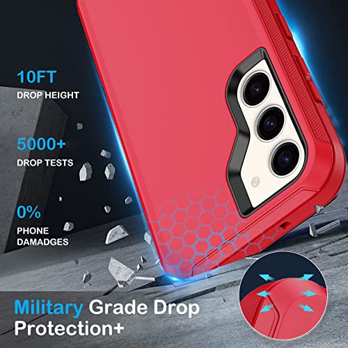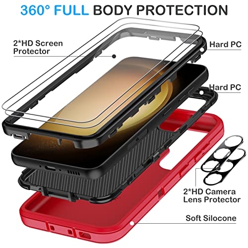 KECAI for Samsung Galaxy S23 Case with 2X Screen Protector+ 2X Camera Lens Protector,Heavy Duty Drop/Shock/Dust Proof 3-Layers Military Rugged Full Body Protection Bumper Cover for Galaxy S23 (Red)