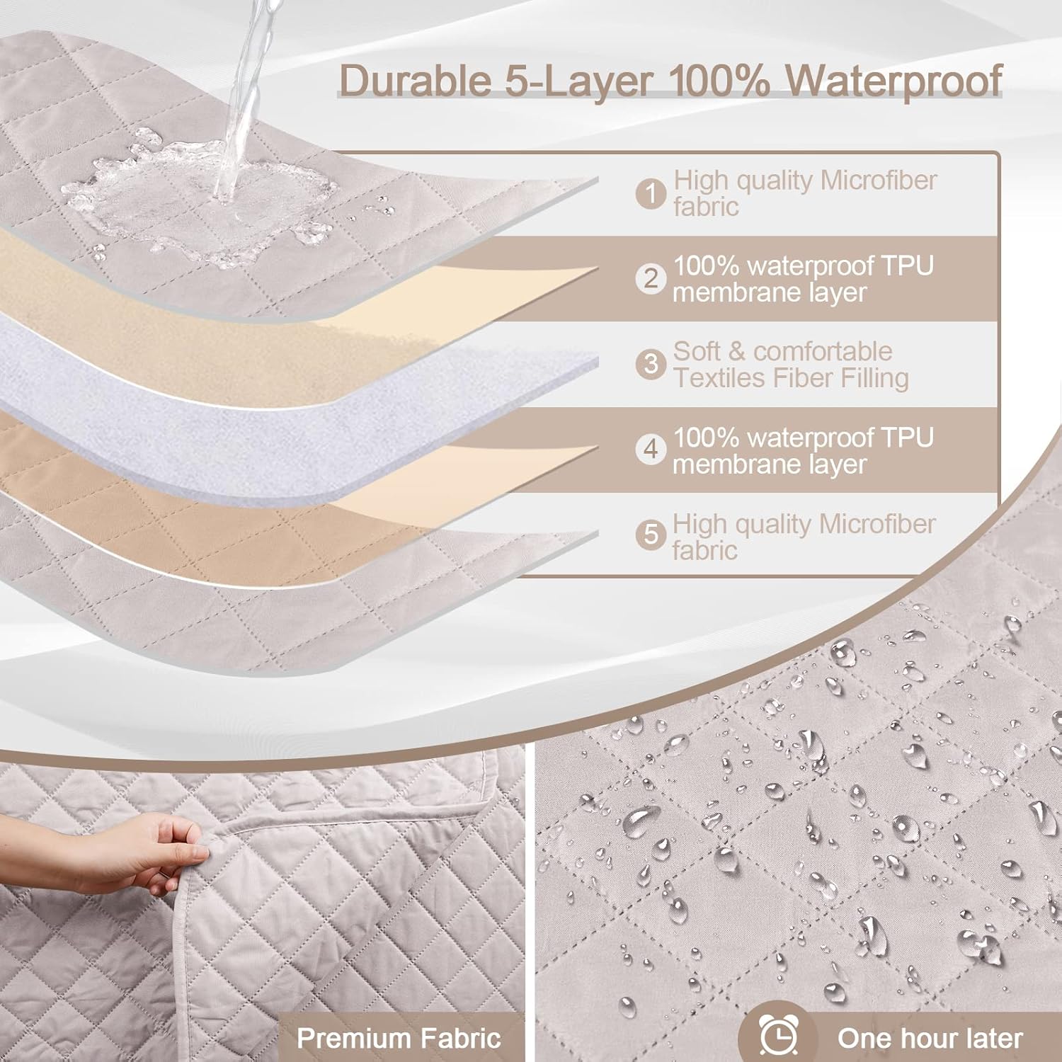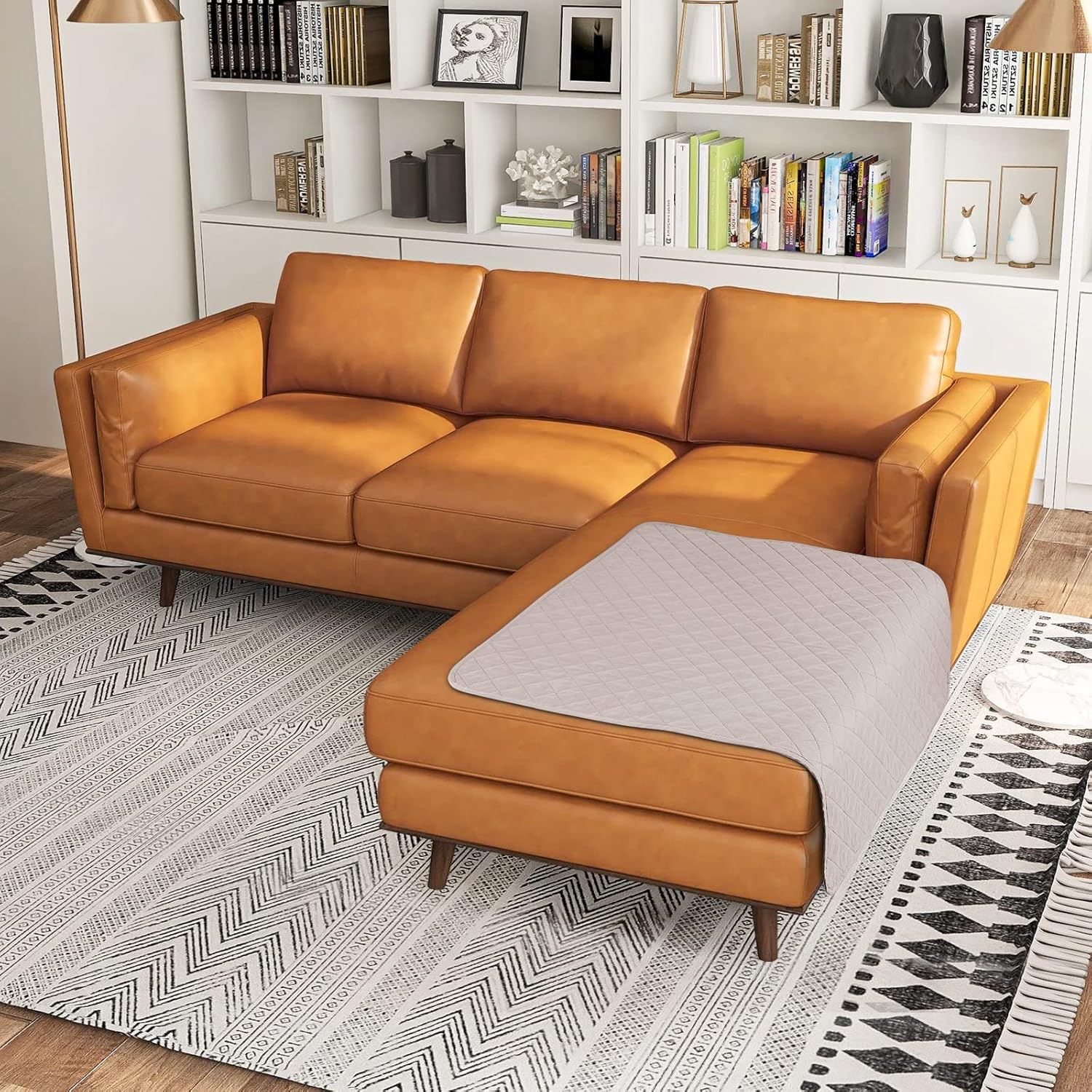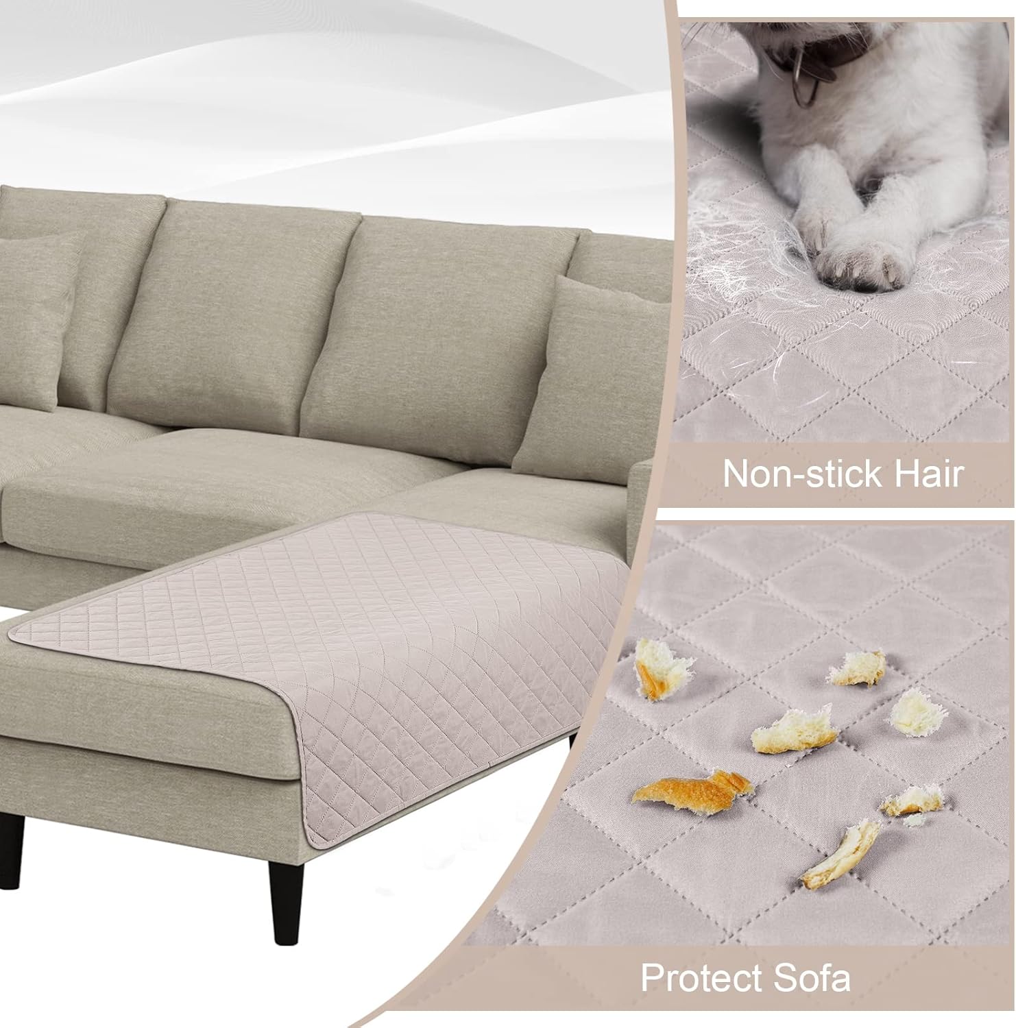Durable & Waterproof Sectional Couch Cover in Light Apricot for Chaise, 42"x35" - Ideal for Homes with Pets and Children