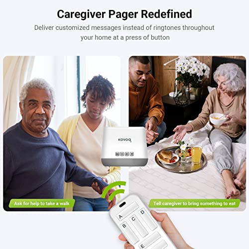 - 【Caregiver Pager Redefined】Call out for help from different rooms, floors or even another building not just through music, but with 6 pre-recorded content which can include specific reasons, like “I want to sit in chair” or “I need some water” etc. Good for elderly or handicapped person as well.