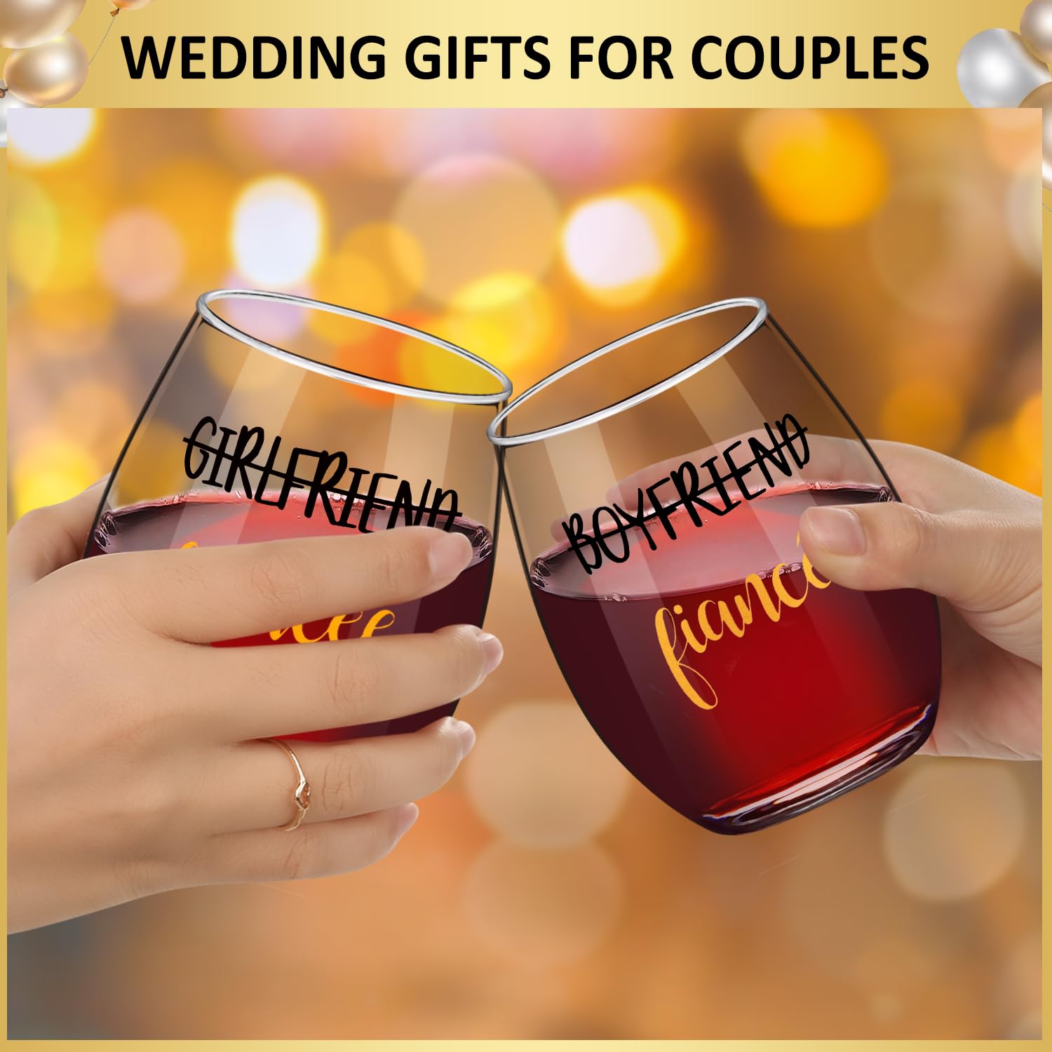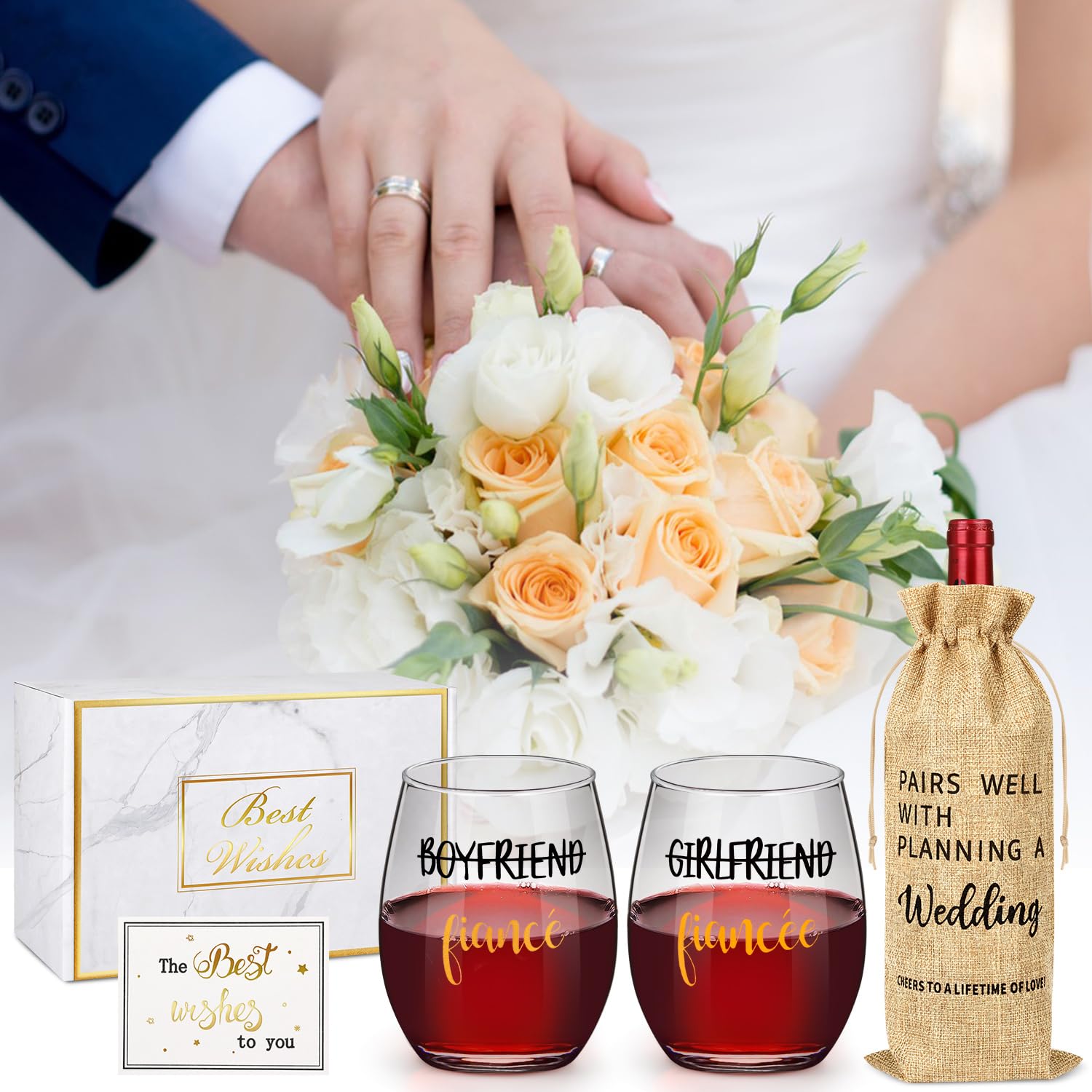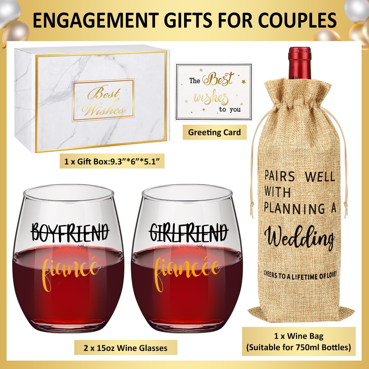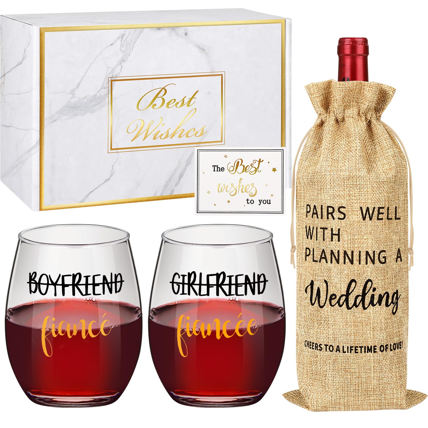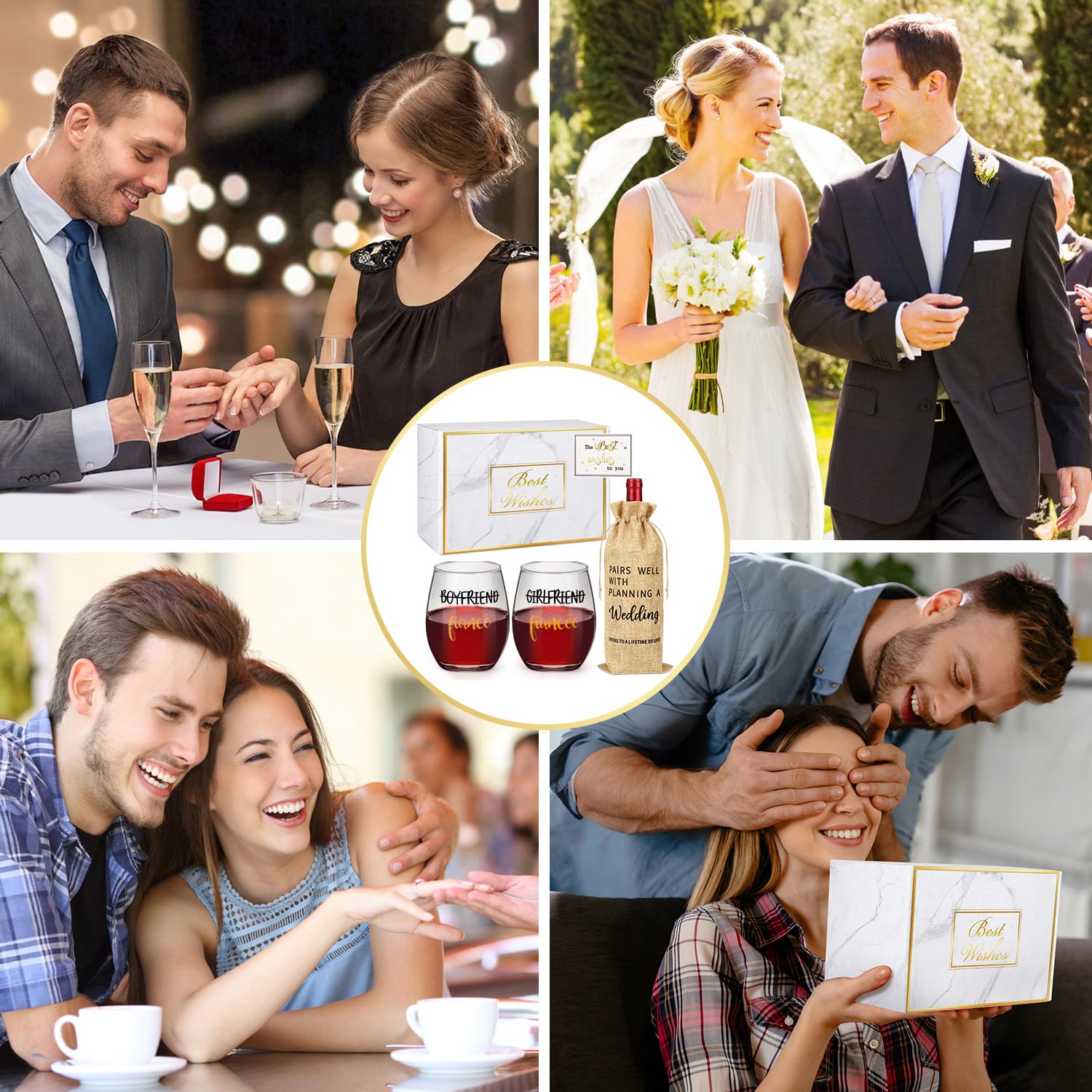 Engagement & Wedding Gift Set: Wine Glasses & Bag for Couples, Bride, and Groom
