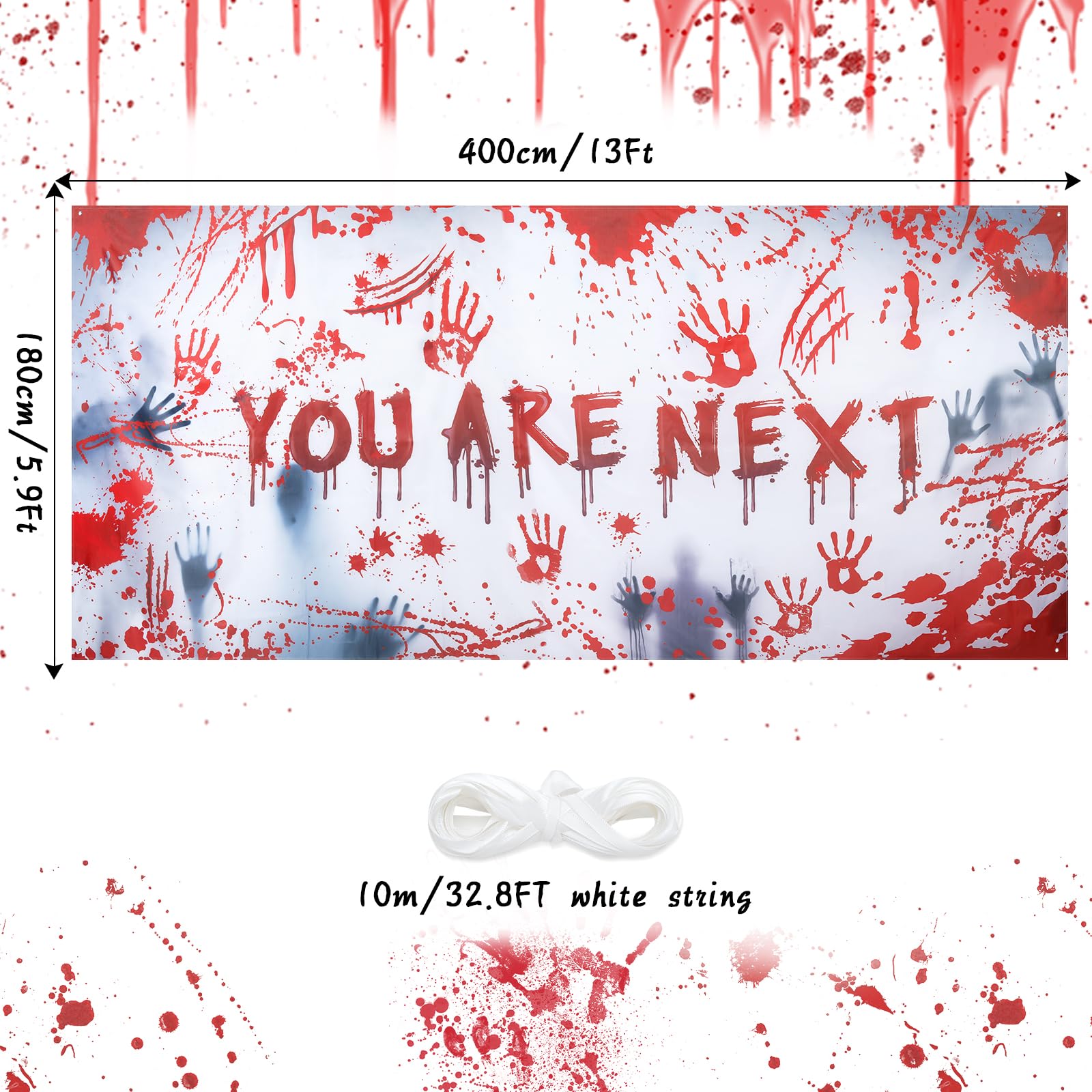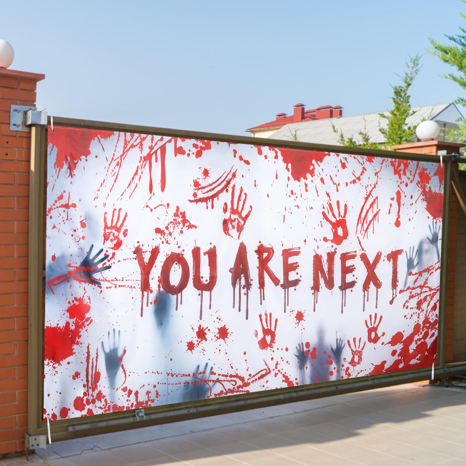 13x6 ft Bloody Handprint "YOU ARE NEXT" Halloween Banner for Garage Door/Wall