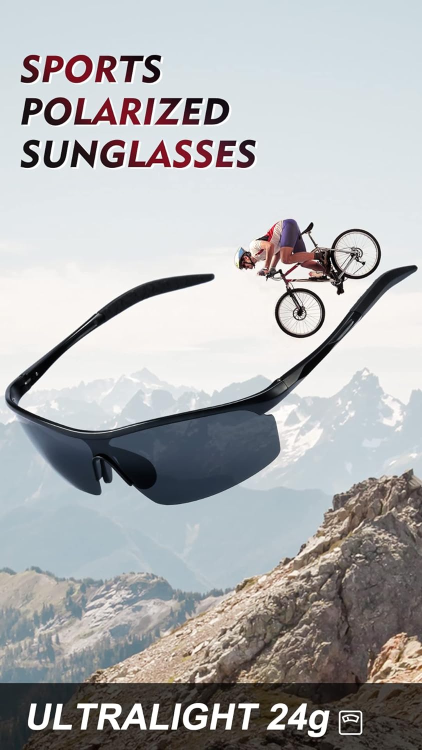 Men's Polarized Sunglasses: Advanced UV Protection, Ultralight Al-Mg Frame for Cycling, Golfing & Driving
