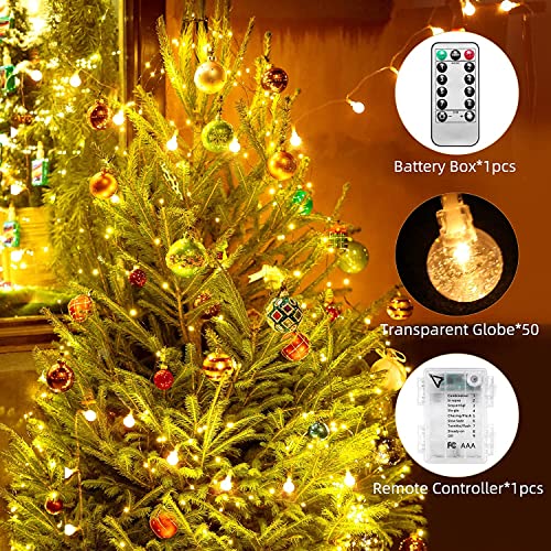 LED Small Bubble String Light 196.85 in 50 Lights Warm White Light with Waterproof Battery Box