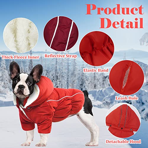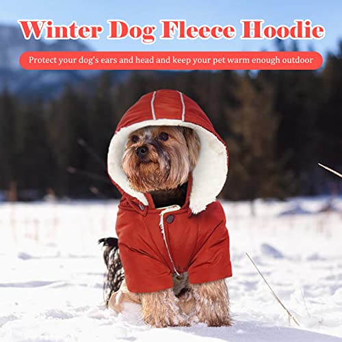 Lelepet Warm Dog Fleece Hoodie, Windproof Dog Winter Jacket, Reflective Dog Coat for Cold Weather, Thick Fleece Padded Dog Winter Clothes Vest for Small Medium Dogs, Detachable Hood & Leash Hole