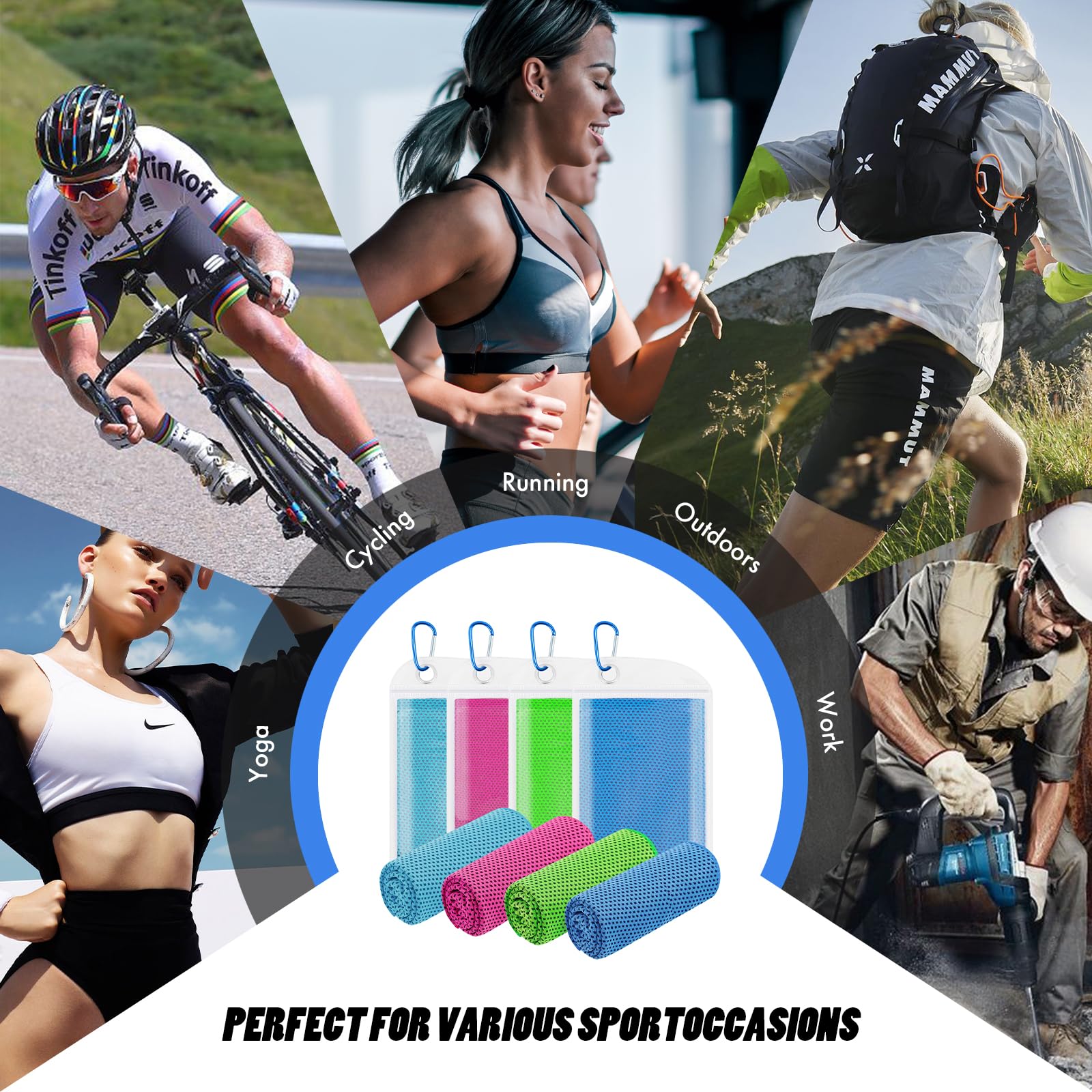 4-Pack Stay Cool with Multipurpose 40"x12" Microfiber Cooling Towels for All Outdoor Activities