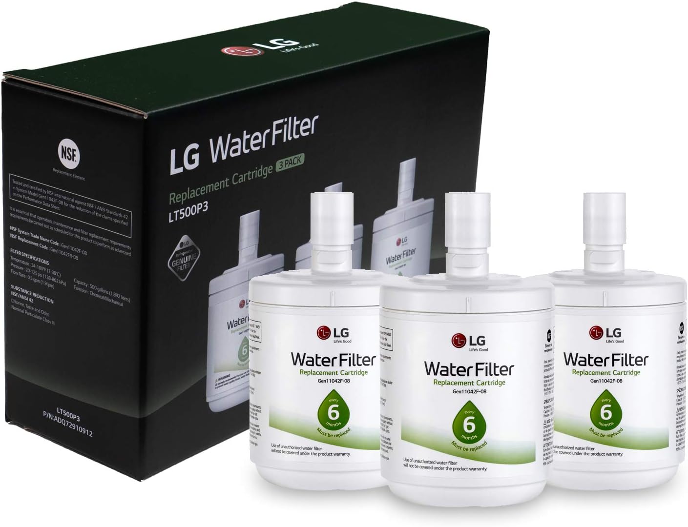 LG LT500P3 Refrigerator Water Filter 3-Pack, NSF Certified for Cleaner, Fresher Tasting Water