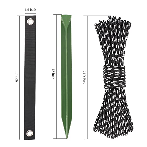 - [Package Including] You will receive 6pcs 12” anchoring tree stakes, 6pcs 1.5”×17” tree straps and 2pcs 32.8 feet(10 meters) with reflective filaments rope.