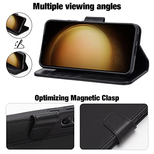 Lugege Compatible with Samsung Galaxy S23 Case Wallet Flip Folio Case [Kickstand] with RFID Blocking Card Holders [Shockproof] and Wrist Strap Phone Cover Black