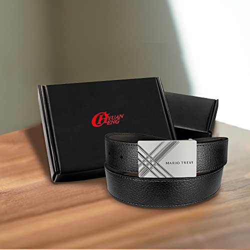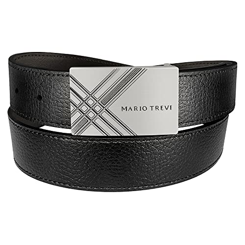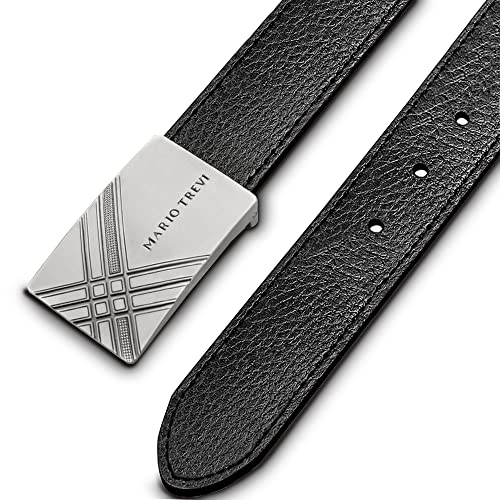 MARIO TREVI Black Leather Men’s Dress Belt, Adjustable Slide with Alloy Buckle for Jeans/ Pants, with Gift Box, Trim to Fit