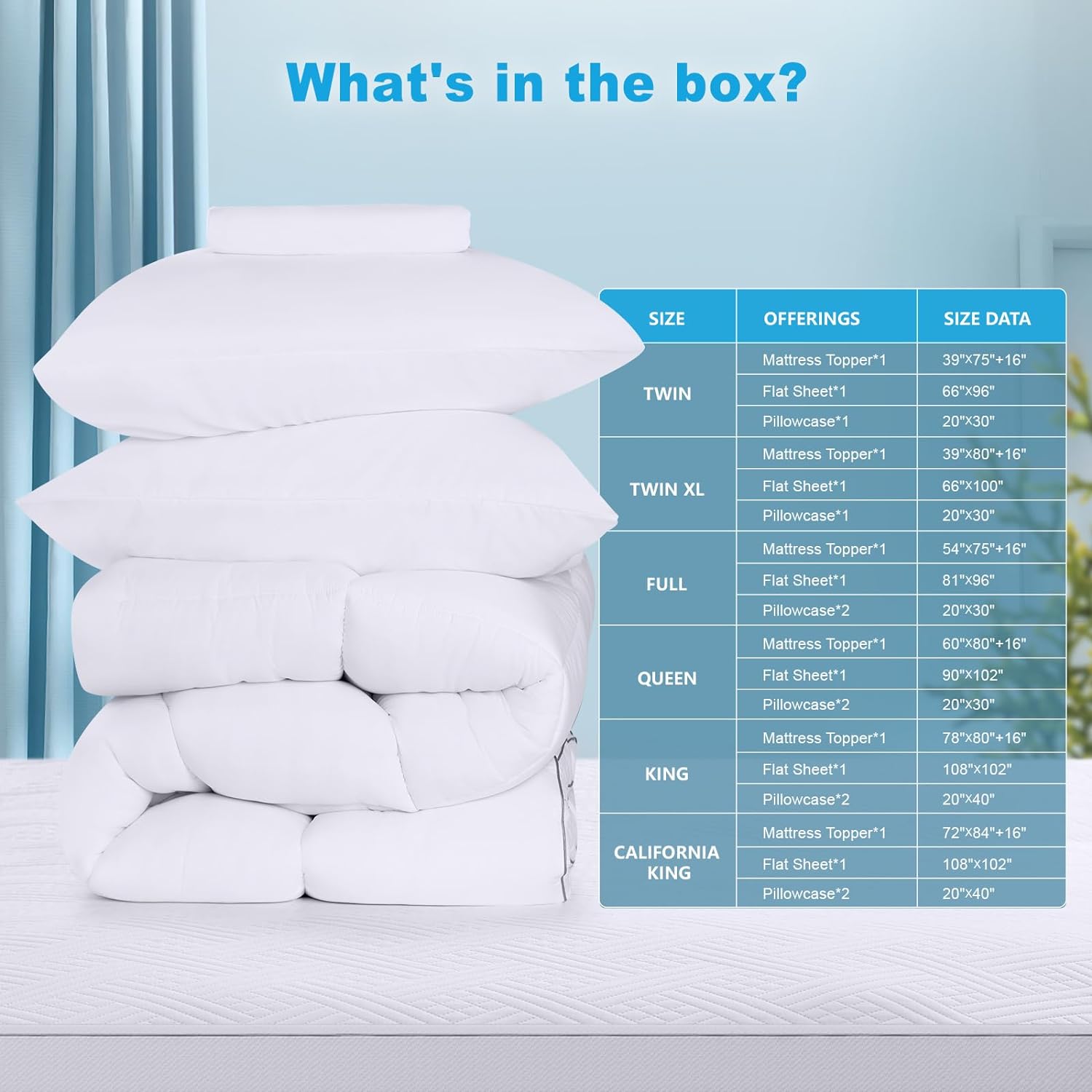 Queen Size Mattress Topper Set with Cooling Technology, Sheet, and Pillowcases - Complete Bedding Solution