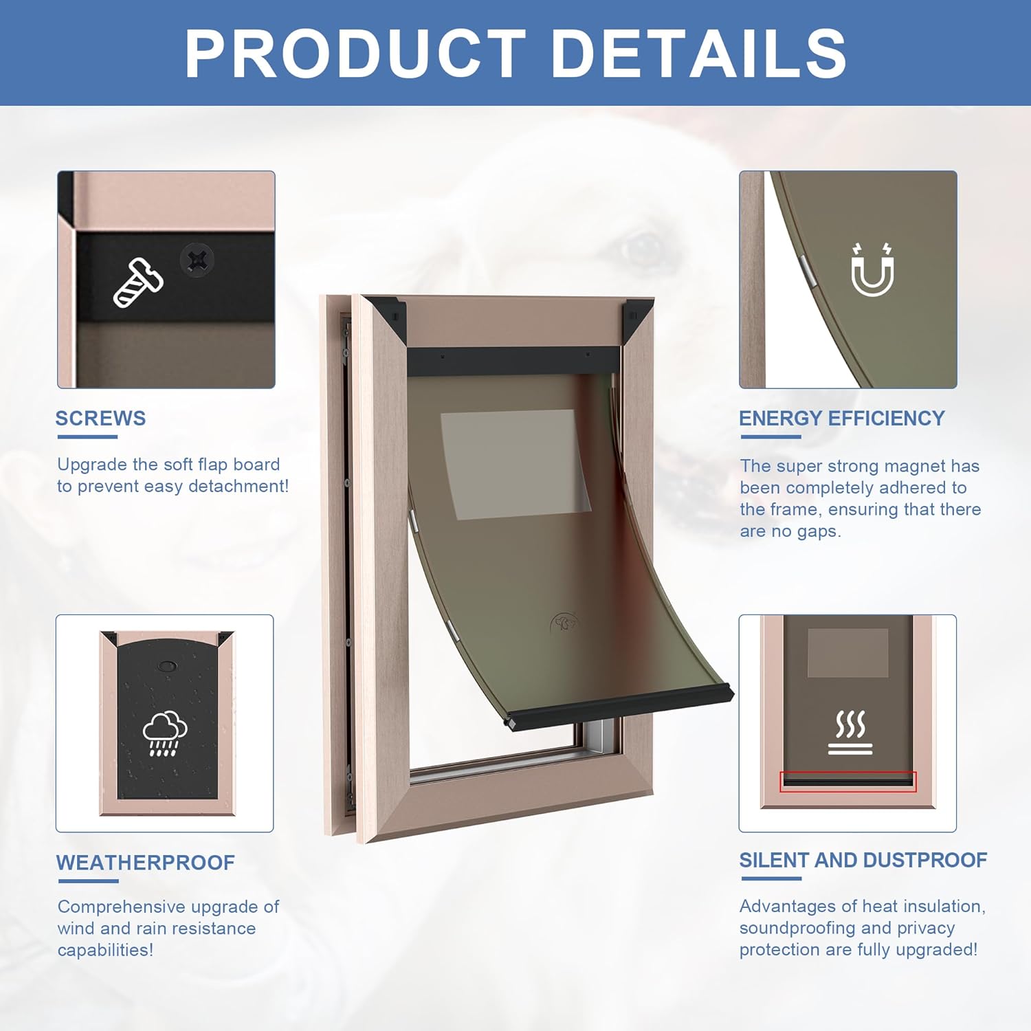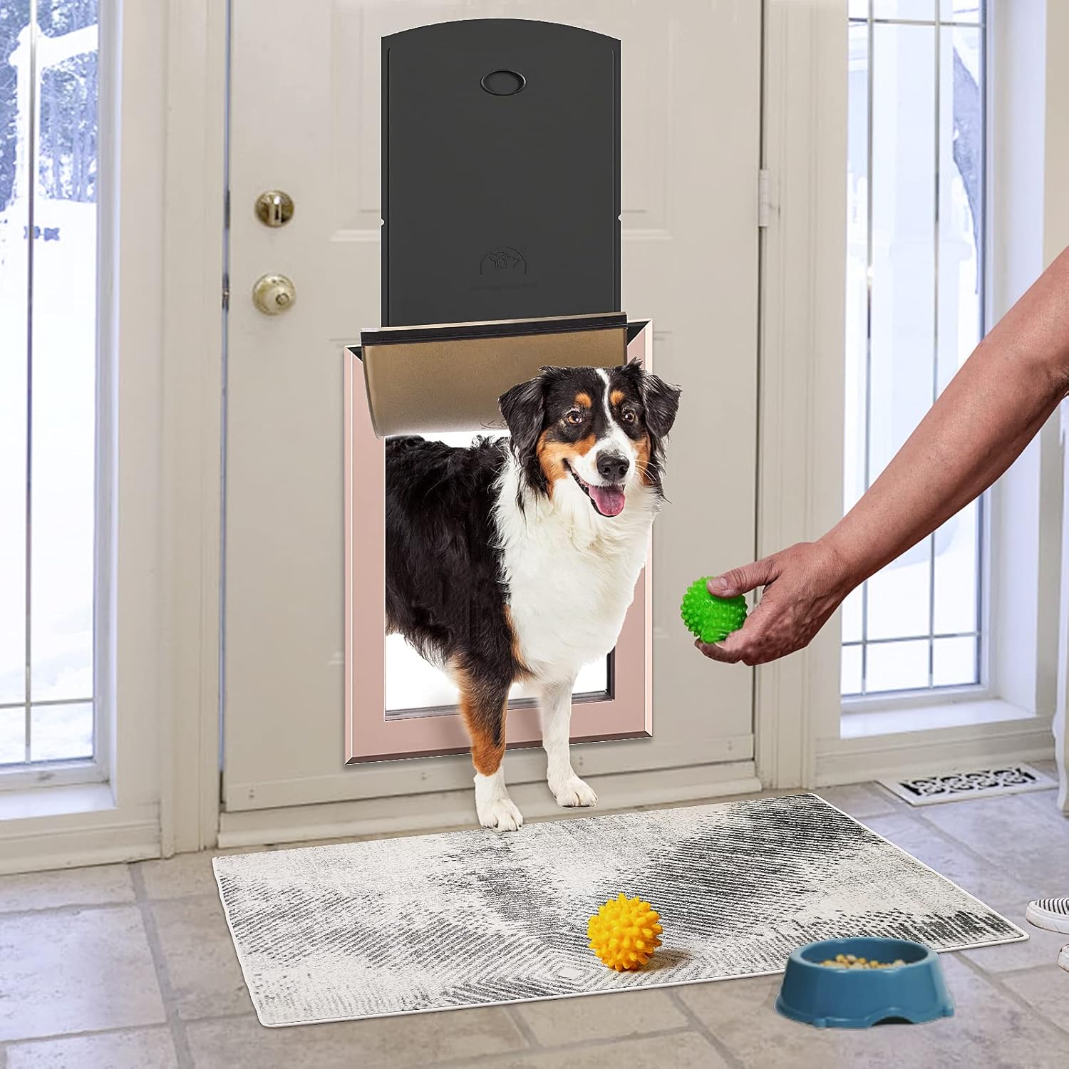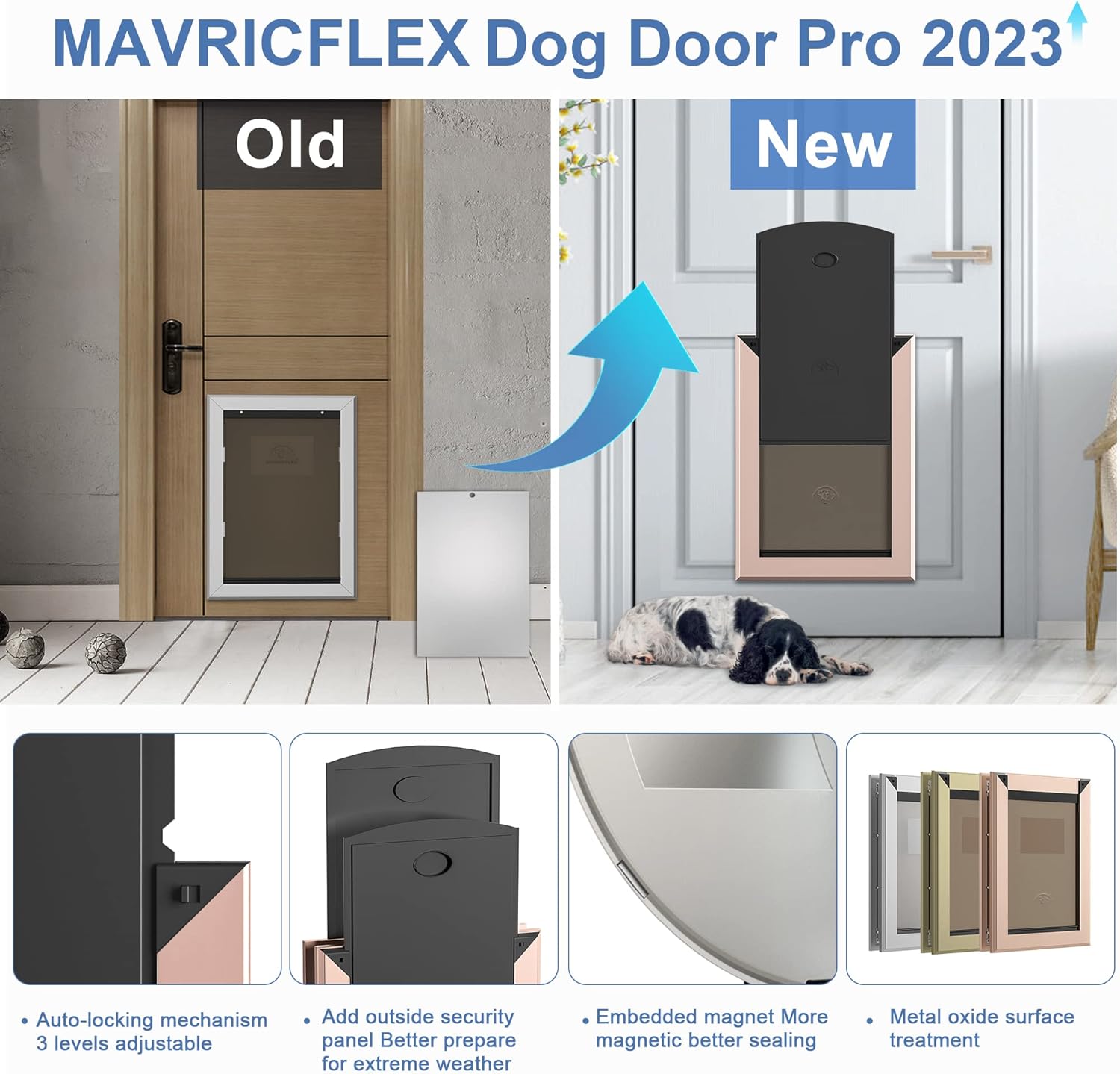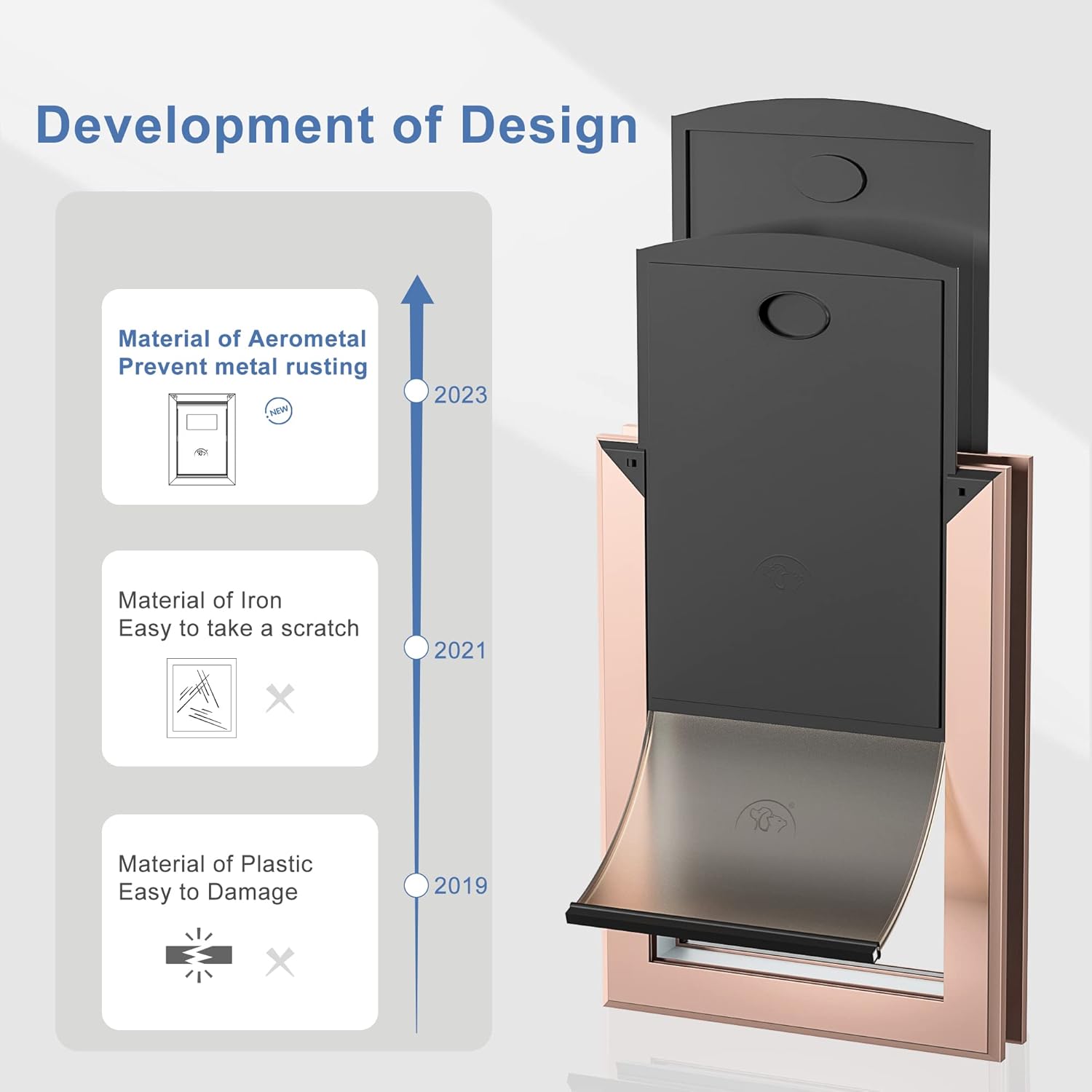 Size Large Rose Gold Aluminum Dog Door - Weatherproof with Magnetic Lock - Fits Dogs up to 100 lbs