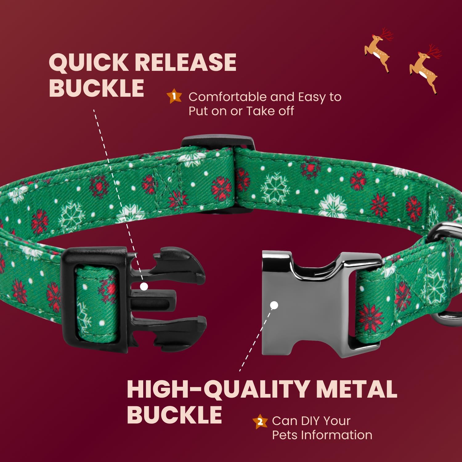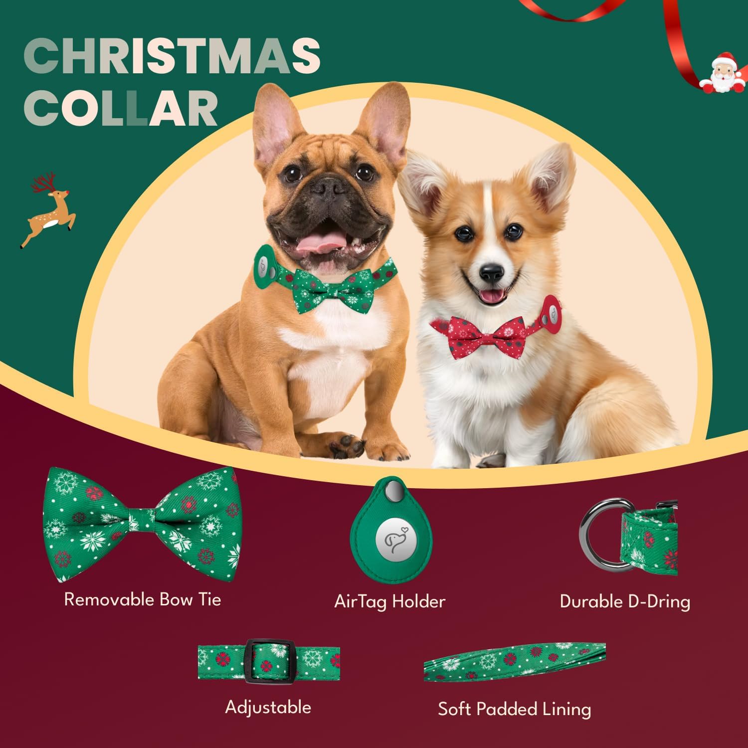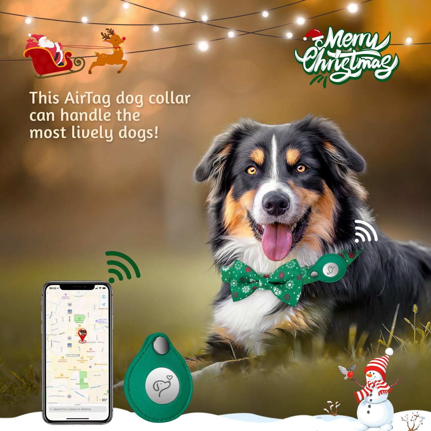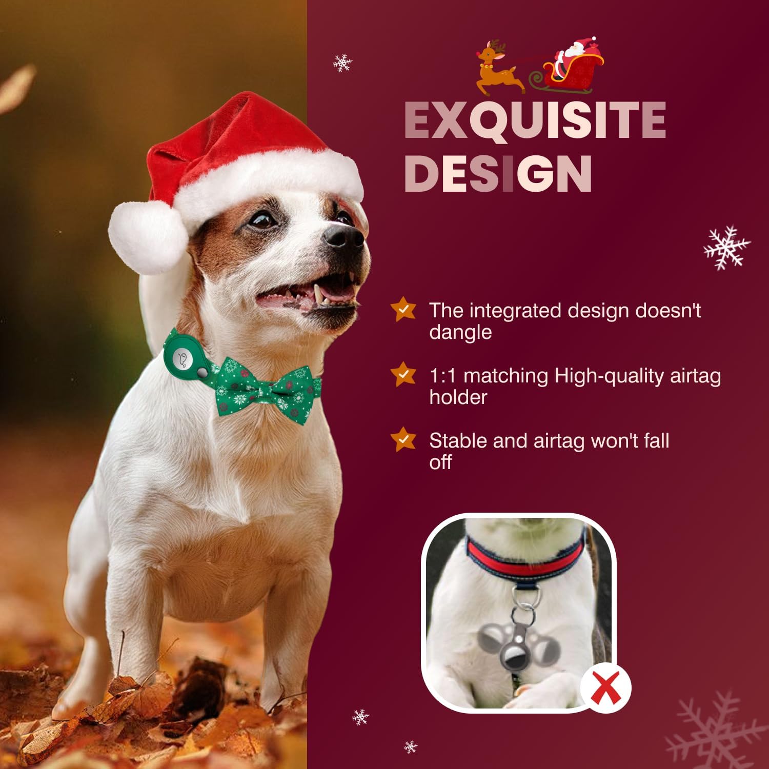 Size Large Green Snow AirTag Dog Collar - Fashionable, Adjustable, Soft Nylon Pet Collar with Detachable Bow Tie, GPS Holder