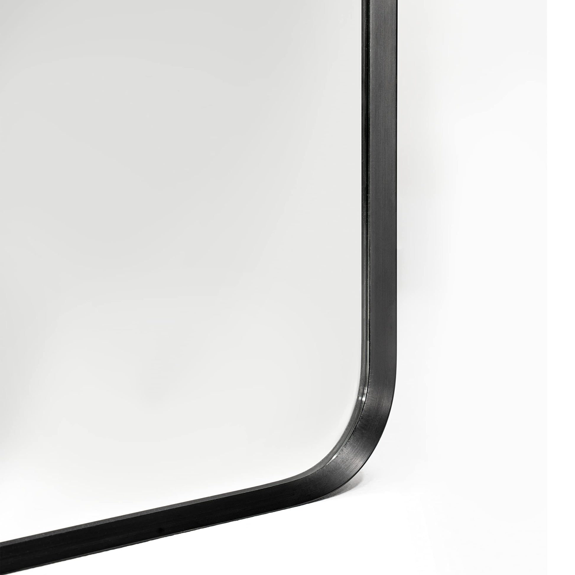 Discover a touch of modern elegance with our bathroom wall mirror, an epitome of industrial chic. Fashioned with an innovative angled design, the brushed matte black metal frame not only exudes sophistication but also provides an added layer of protection to the mirror. What sets this mirror apart is its resilience; the black mirror boasts anti-stripping, anti-cracking, and anti-water properties, making it superior and safer than the conventional recessed frames.
