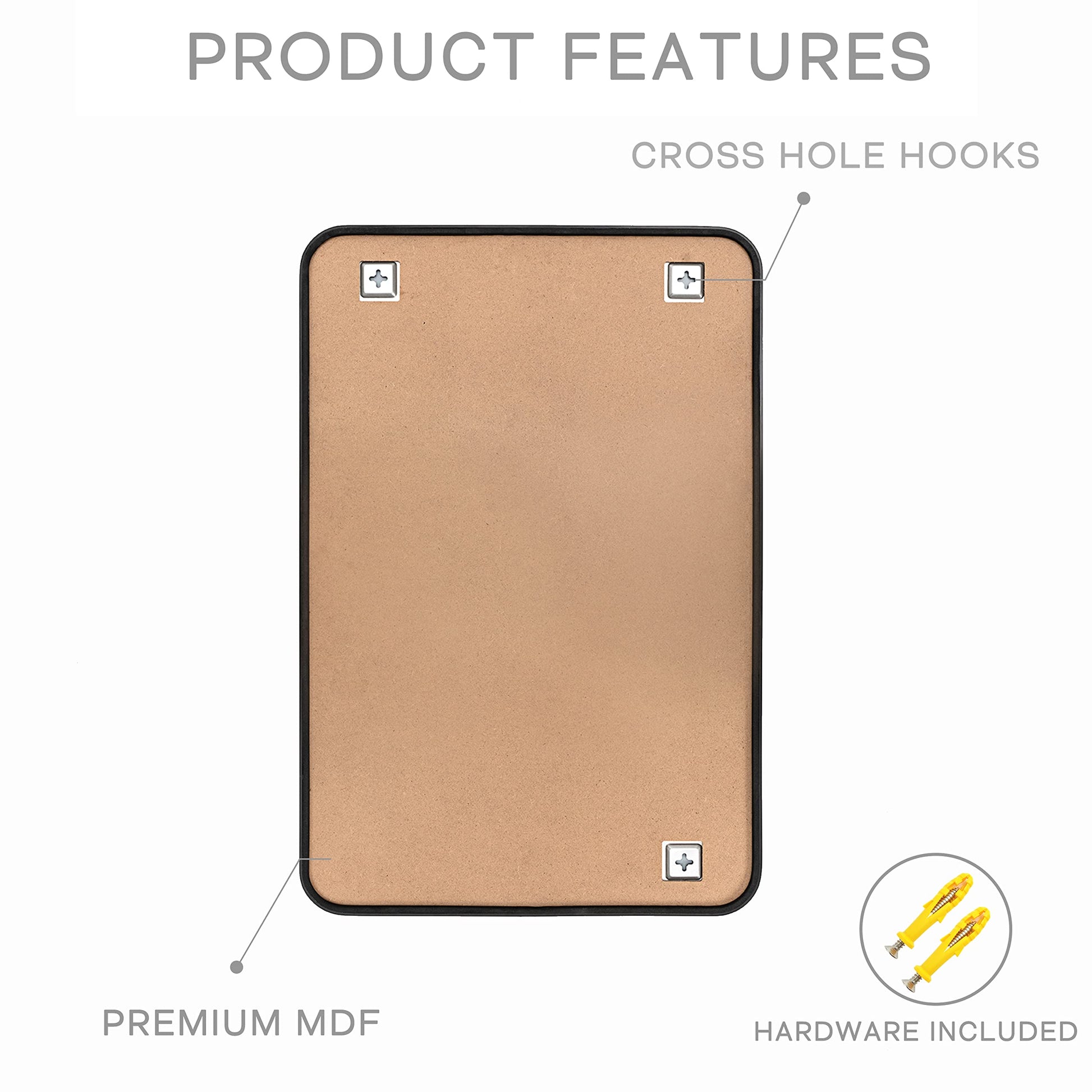 20"x30" Black Metal Framed Rounded Corner Rectangular Wall Mount Vanity Mirror