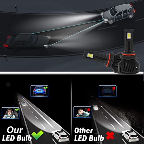 - 500% Brighter: 9005 LED bulb uses double-sided LED chips. 6500K cool white provides a clear vision for night driving, earlier detecting obstacles ahead, maximizing the driver's reaction time.