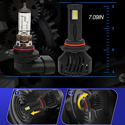 Details: Ultra-Bright: 9005LE Headlight Bulb,60W, 12000LM per pair, using LED 3570 lamp bead chip, 300% brighter than halogen lamp, no black spots, perfectly focused light source, using LED bulb 6500K cold white light, wider viewing angle, improving driving safety at nightUltra-Fast: plug and play, easy replacement in 5 minutes, according to the original halogen lamp installation bayonet plug 1:1 die-casting molding, accurate size, smaller volume than the original halogen lamp, lighter, and more convenient to installApplicability: Built-in intelligent EMC, anti-interference, error-free, suitable for 99% of vehicles, some sensitive vehicles may need to install a CAN bus decoder.Fast Heat Dissipation: The body adopts 7075 aviation aluminum to dissipate heat by itself, with a high-speed silent fan, heat dissipation is faster and more efficient, and the use time is improved. Product life can reach 50,000 hours.