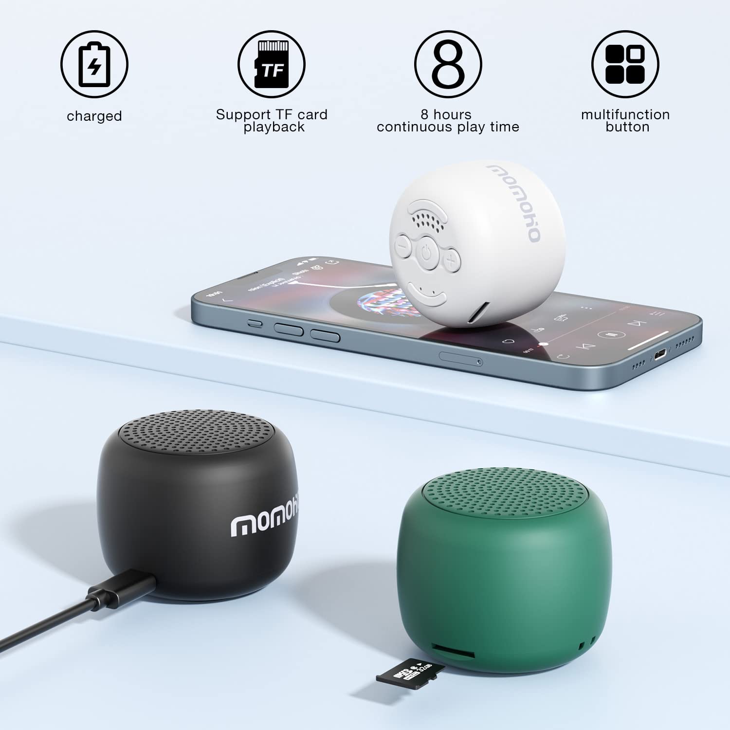 Delve into an immersive auditory journey with this lightweight, portable Bluetooth speaker. Boasting the advanced Bluetooth 5.0 technology, it promises a stable connection within a 56-foot range, delivering high-fidelity stereo sound. The TWS connection technology enables the linking of two speakers simultaneously, creating a 360° surround sound experience that envelopes you in a blanket of rich, detailed sound from all directions. This speaker's compact design, accentuated by an ABS material base with multiple coatings and rubber paint technology, renders it not just stylish, but also wear and dust resistant with a tactile, silky feel. It's perfect for those on the go, weighing a mere 3 oz with dimensions of 1.98 x 1.98 x 1.58 inches, making it a breeze to slip into handbags, backpacks, or pockets. The TF card playback feature liberates you from the confines of Bluetooth connectivity; simply pop in a memory card and enjoy up to 8 hours of continuous play. Multifunctionality shines with its built-in microphone, facilitating clear voice calls. Each package includes a Bluetooth speaker, charging cable, lanyard, and user manual.