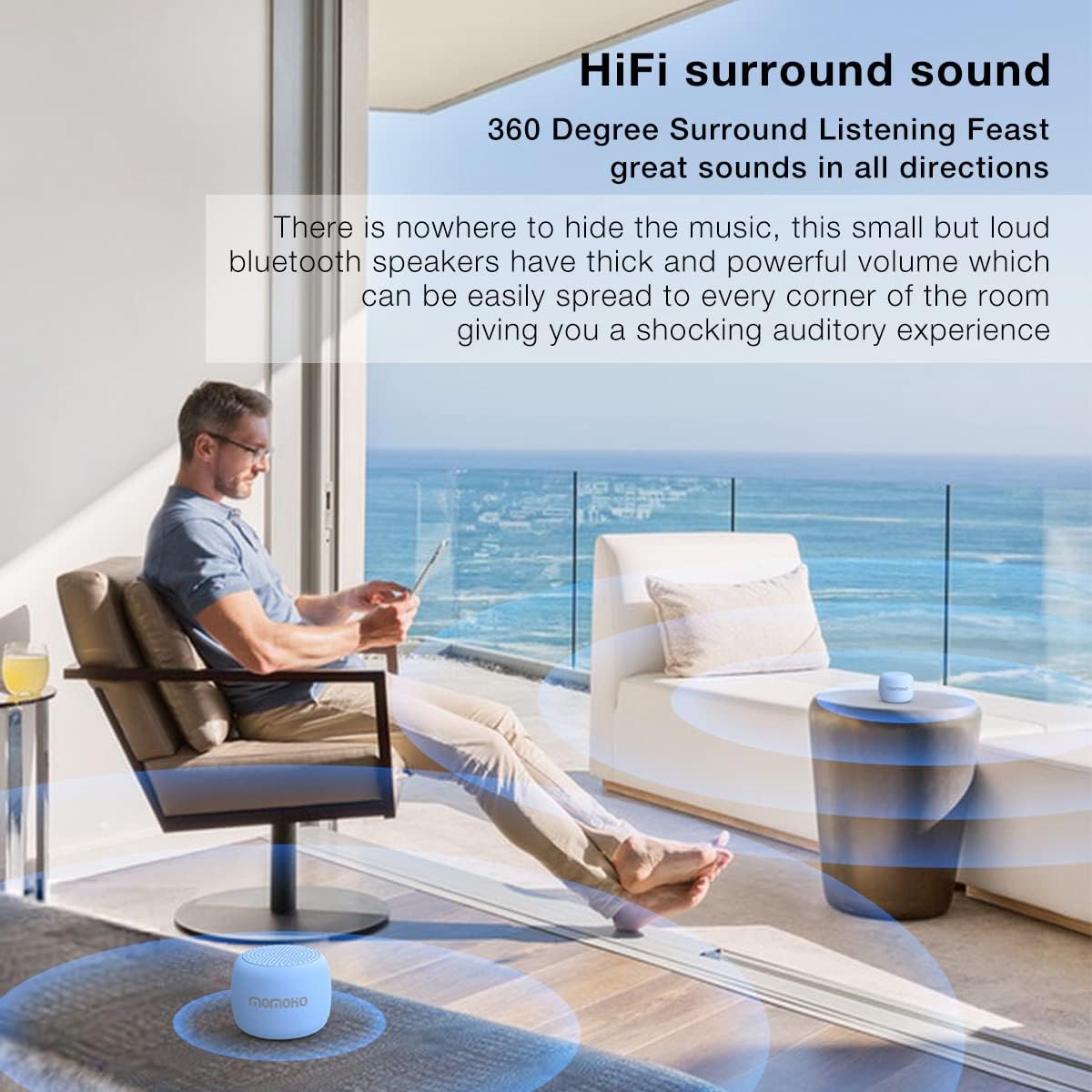 Compact Bluetooth 5.0 Speaker with HD Sound, TWS Pairing & Built-in Mic (Blue)
