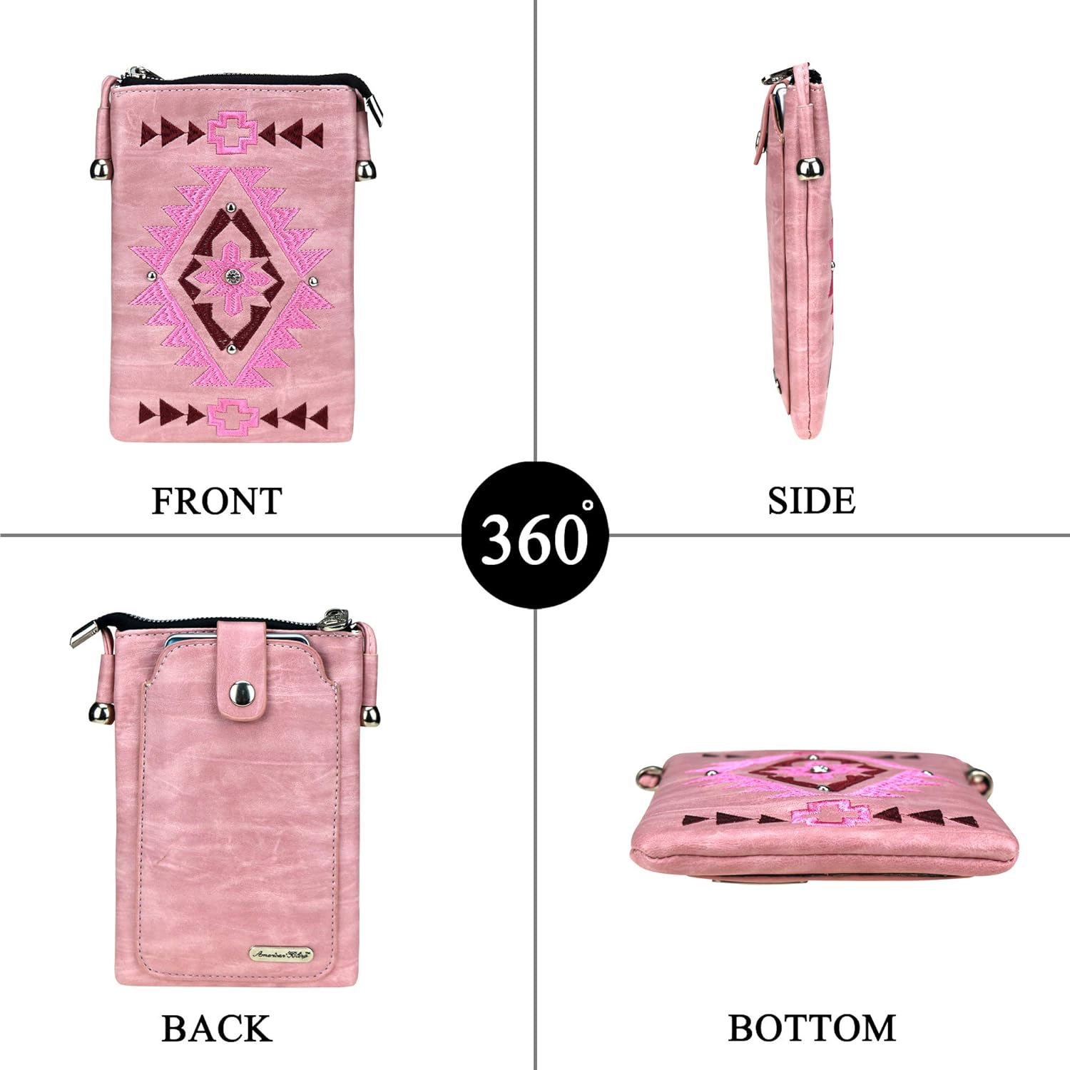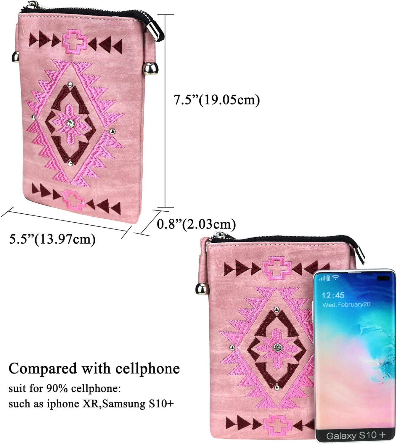 Dive into the essence of the modern cowgirl's fashion with our Trendy Pink Fringe Crossbody Purse, a blend of traditional western allure and contemporary design. Crafted for the dynamic woman on the go, this purse features a distinctive embroidered geometric pattern on the front, elegantly complemented by a top zipper closure for secure storage. The unique addition of a phone pocket on the back, secured with a button snap, ensures your device is always within easy reach, comfortably fitting phones up to 6.5 inches with a case.