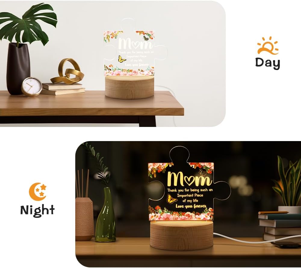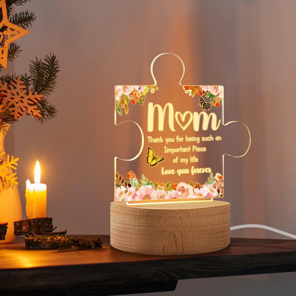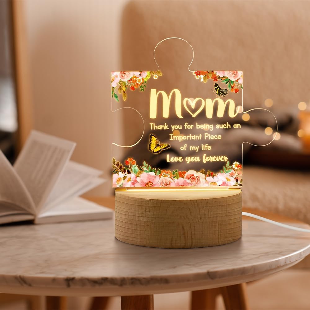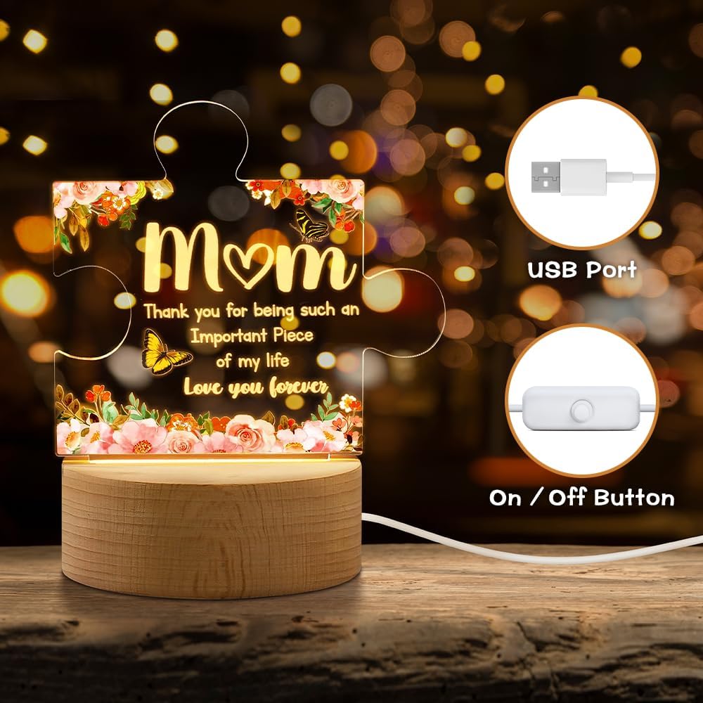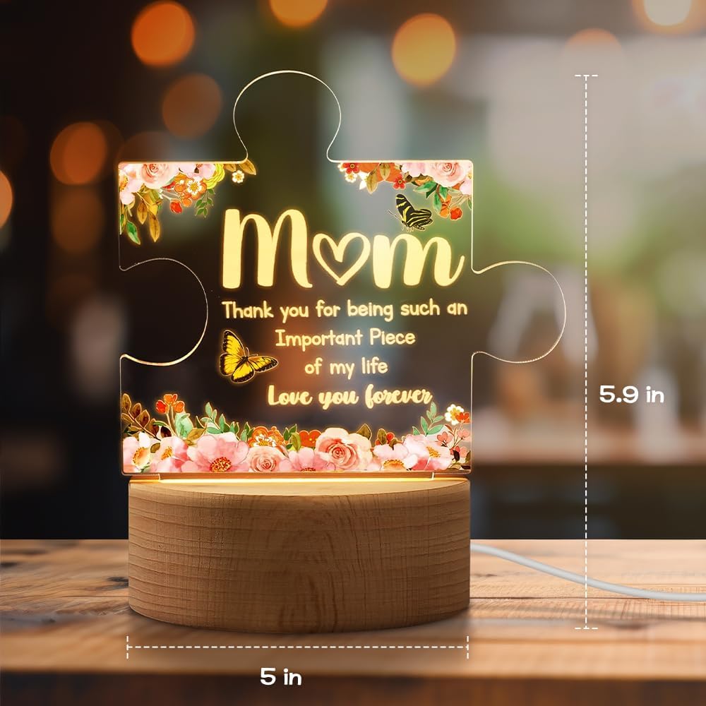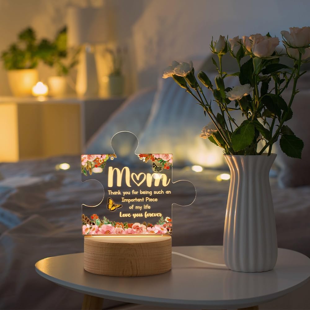 Acrylic Puzzle Piece Sign with LED Stand for Mom - Perfect Mother's Day Gift from Kids