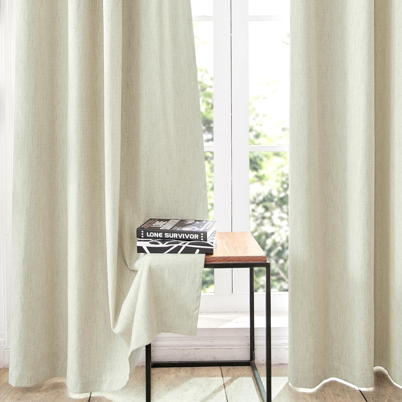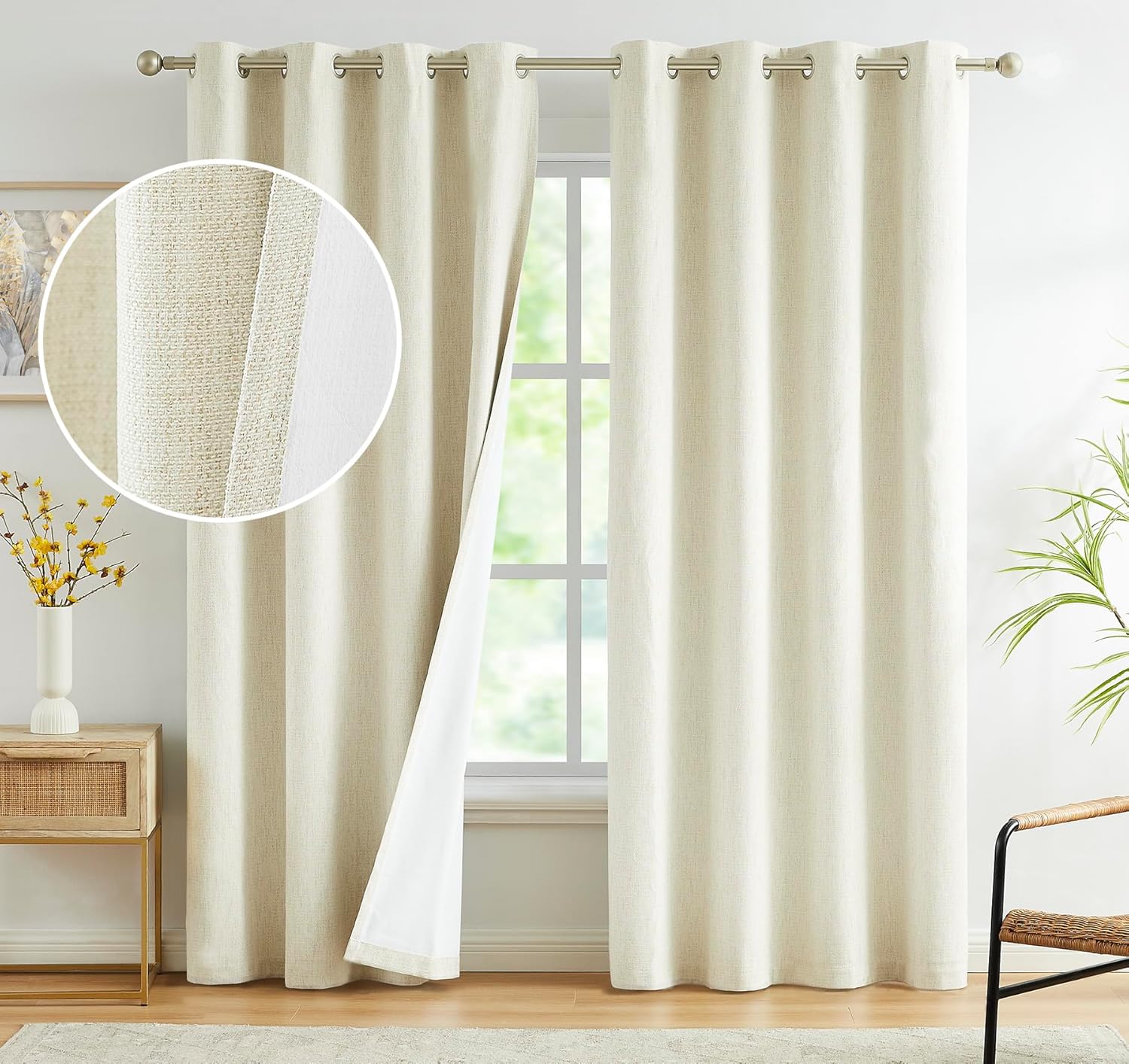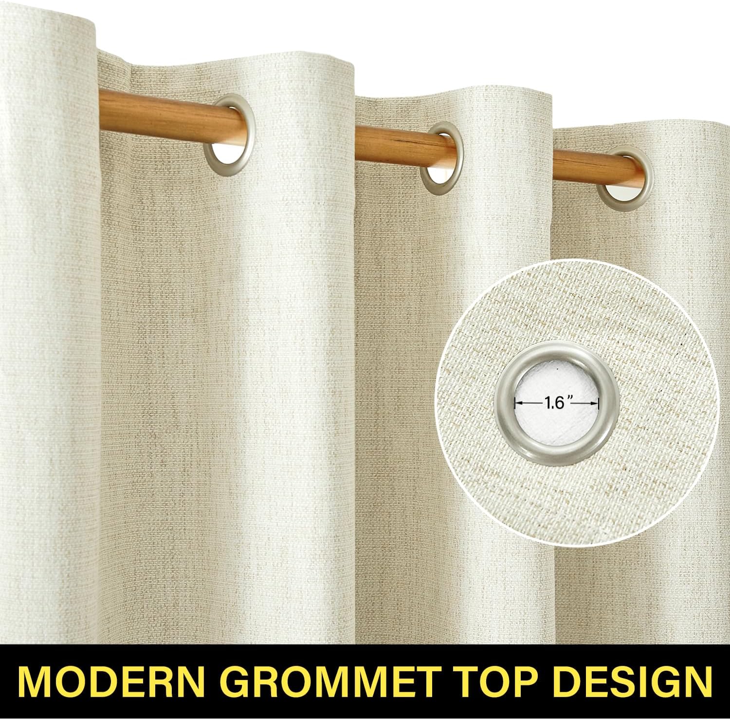 Single Panel Linen Blackout Curtain 84 Inch, Ivory - 100% UV Protection, Grommet Top
