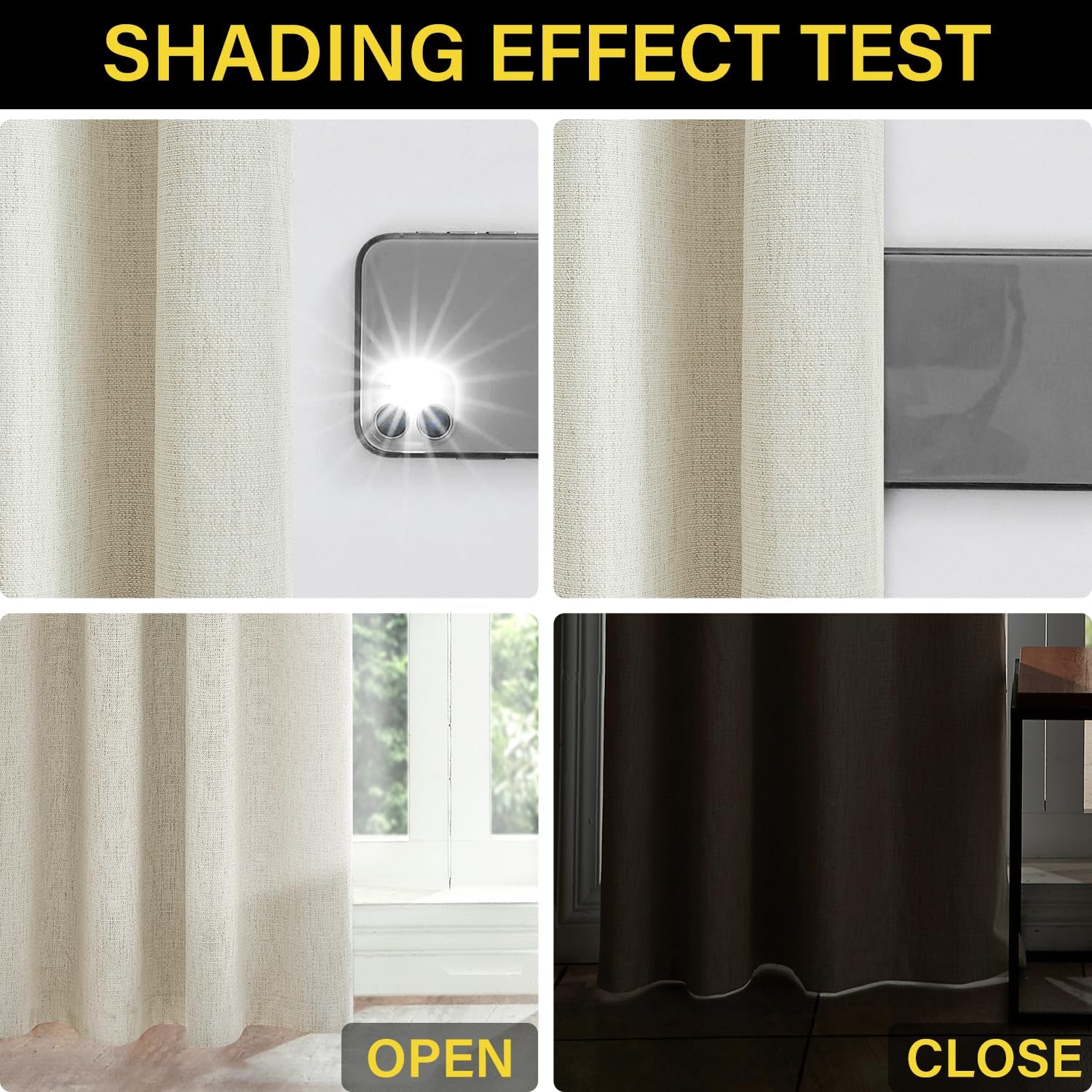 The curtain features a fully opaque white shading coating that guarantees a 100% blackout effect, effectively eliminating all sunlight and UV rays. This ensures complete privacy and an uninterrupted good night’s sleep, whether during the day or night. The installation is made effortless with the inclusion of silver grommets, each with a 1.6-inch inner diameter, allowing for easy sliding and a contemporary aesthetic.