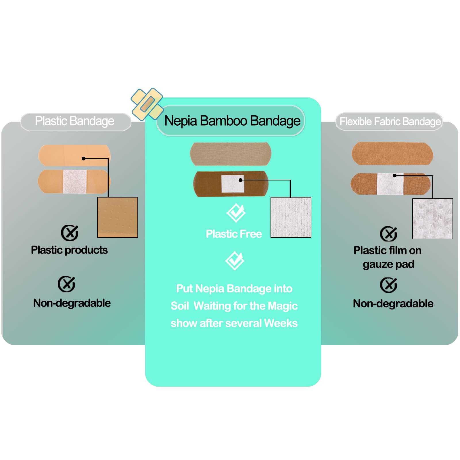 Eco-Friendly Bamboo Bandages: 100pc Hypoallergenic, Biodegradable, Latex-Free
