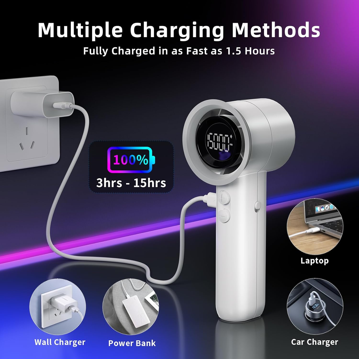 Portable Handheld Fan with 100-Speed Turbocharged Airflow & 5000mAh Battery - Ideal for Travel, Camping & Outdoor Use