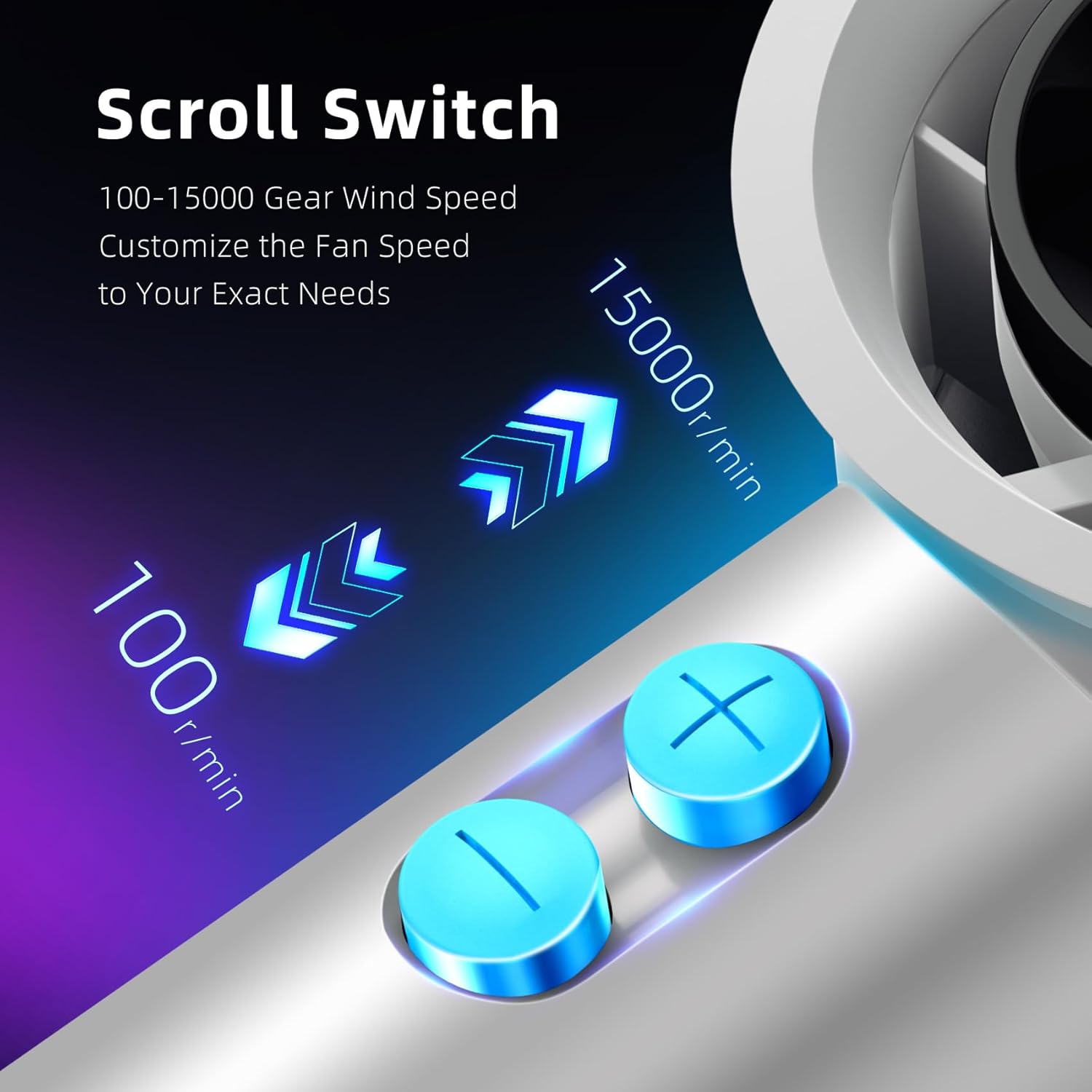With 100 adjustable speed settings, this fan provides a customizable breeze, allowing you to fine-tune the airflow to your exact preference. It boasts a maximum wind speed of 10 meters per second (approximately 22.3 mph), and its highest setting reaches up to 15,000 RPM, making it one of the strongest portable fans on the market.