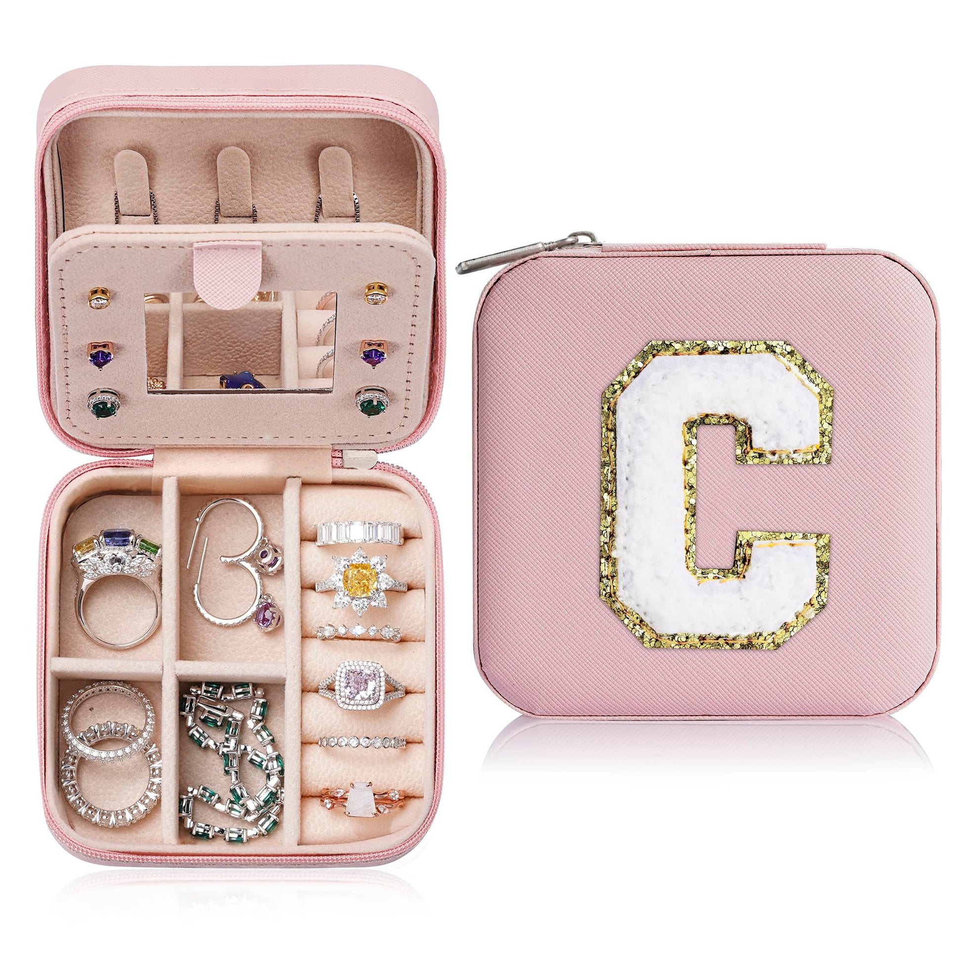 Personalized Pink Travel Jewelry Box with Monogram C - Ideal for Women's Birthday and Christmas Gifts