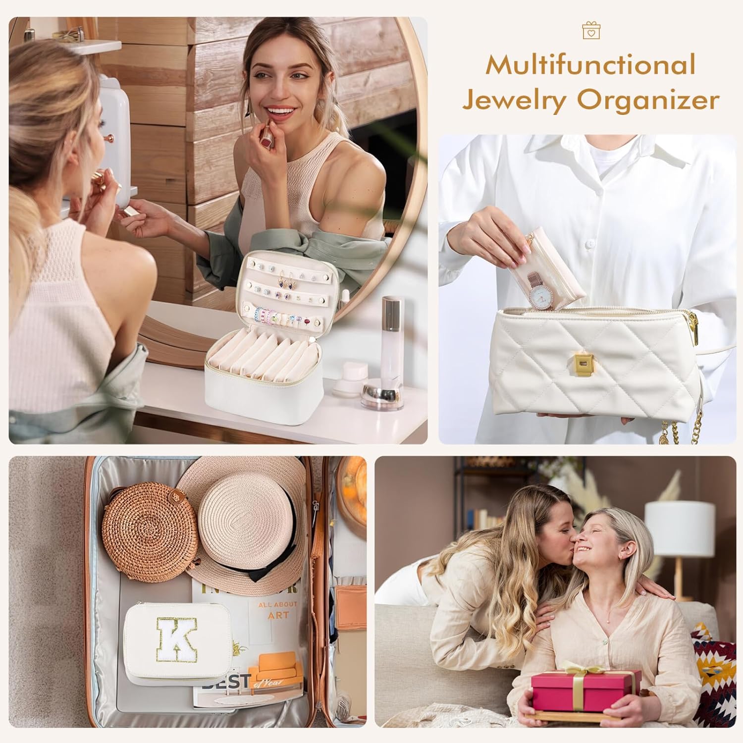 Ultimate Bridesmaid Gifts: White Travel Jewelry Case with Embroidered 'S' - Safe & Stylish Storage