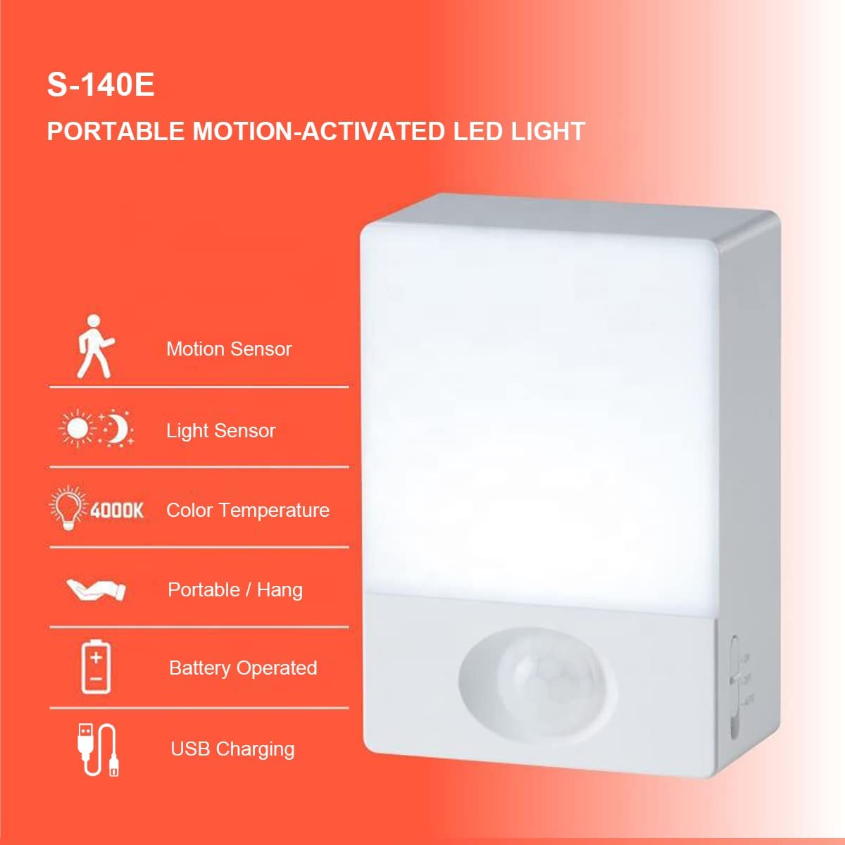 USB Rechargeable Portable LED Wireless Night Light w/ Motion Detector