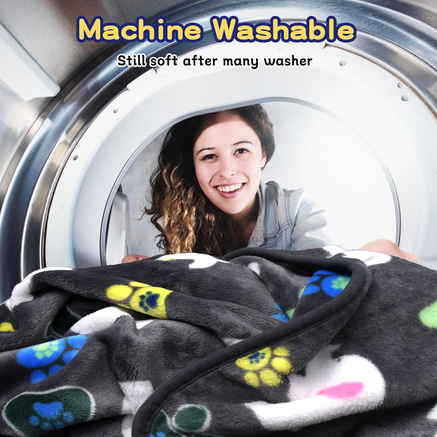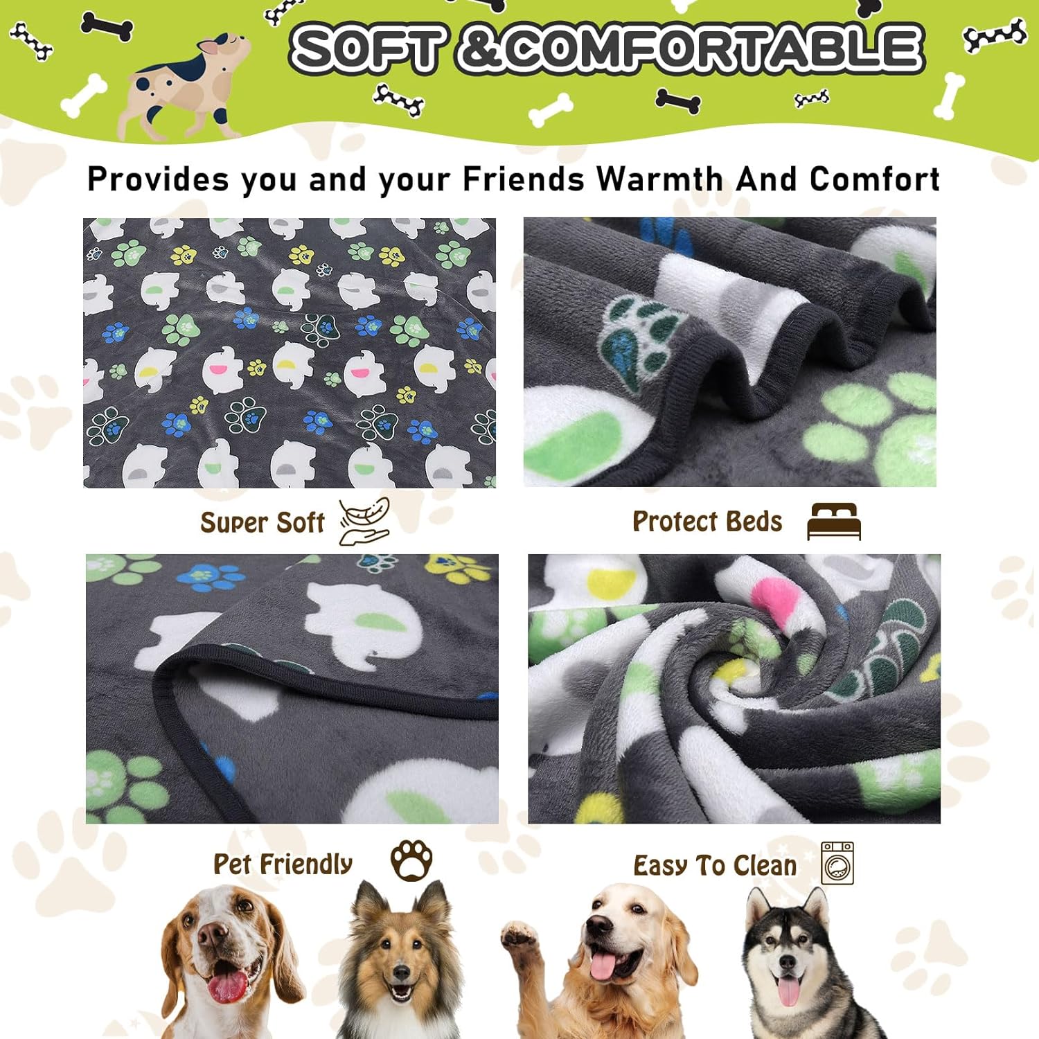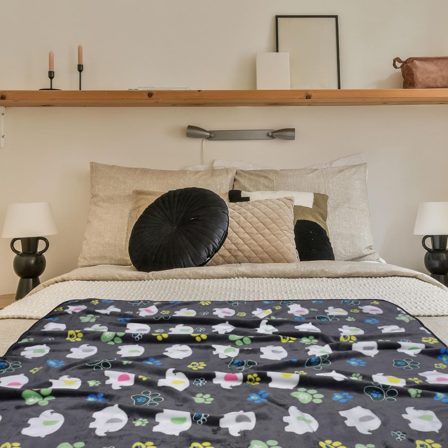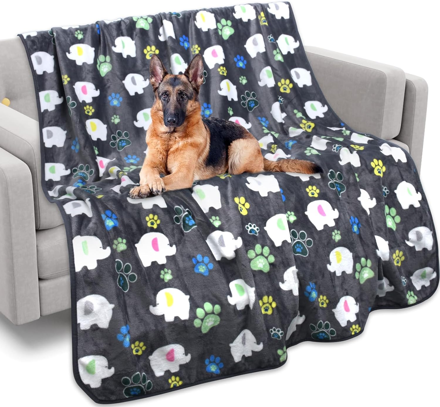 Premium Dog Blanket for Large Dogs, Flannel Elephant & Paw Print, 60x50" - Pet Comfort
