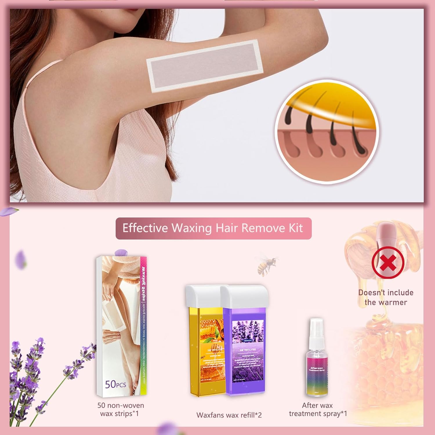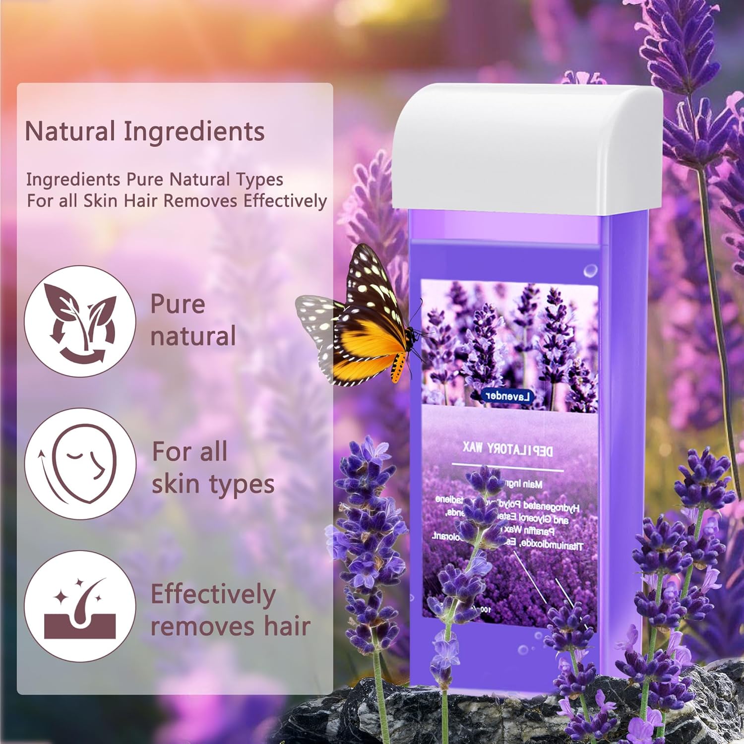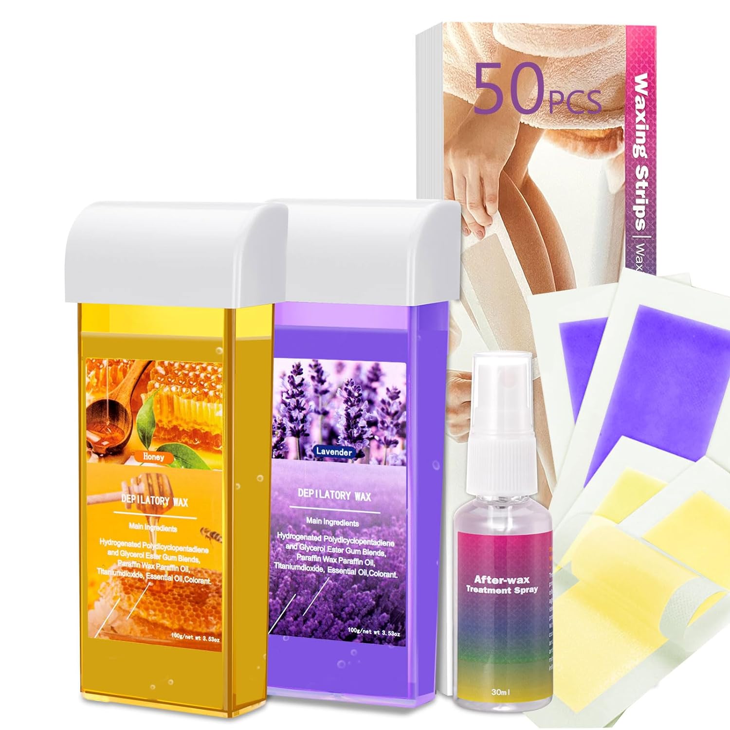 Honey & Lavender Roll On Wax Kit for Body Hair Removal, No Applicator