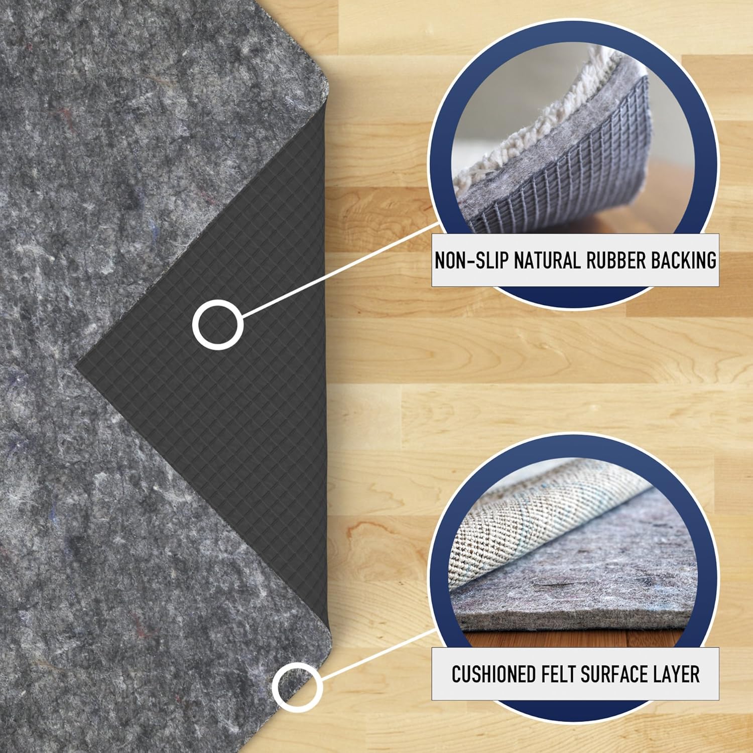 Non-Slip Rug Pad 2'x5' - 1/4" Thick Felt + Rubber for Hardwood Floors