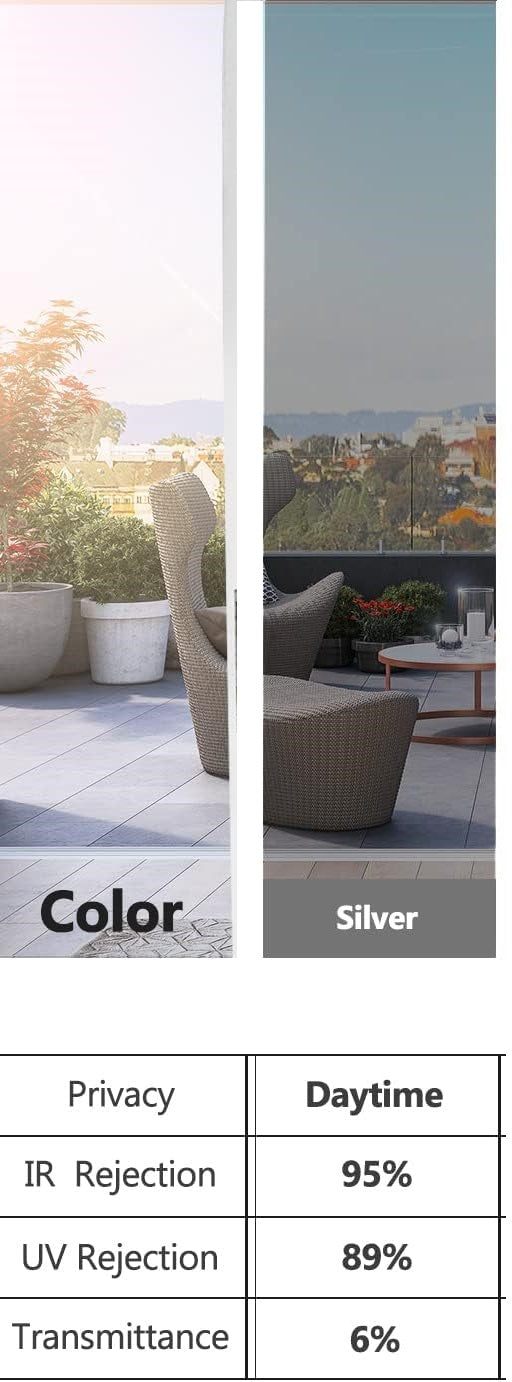 Silver Sun Blocking Privacy Window Film One Way Daytime Mirror Tint