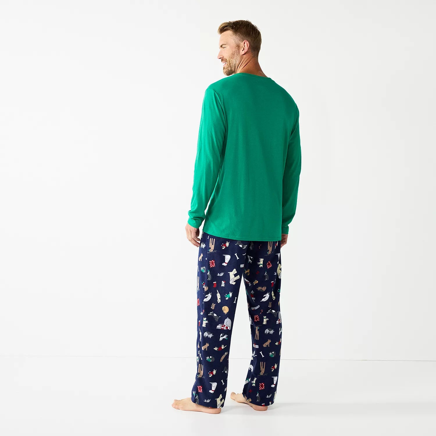 Size L Men's Happy Howlidays Pajama Set: Crewneck Top & Cozy Elastic Pants for Family Fun