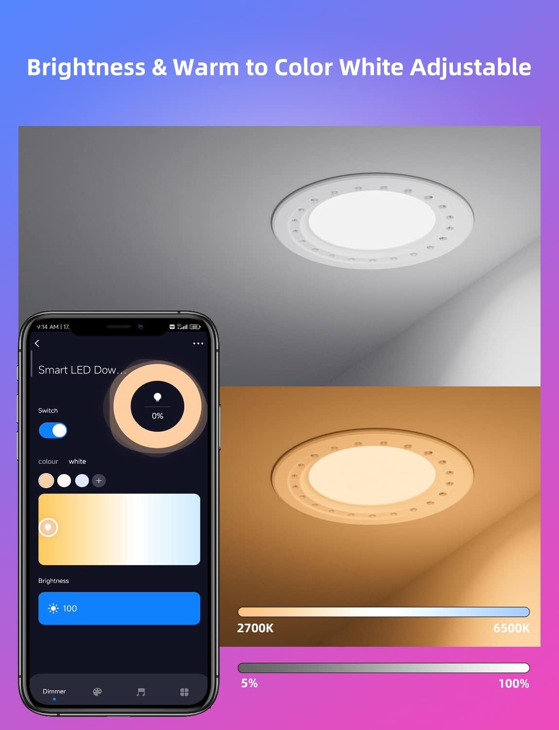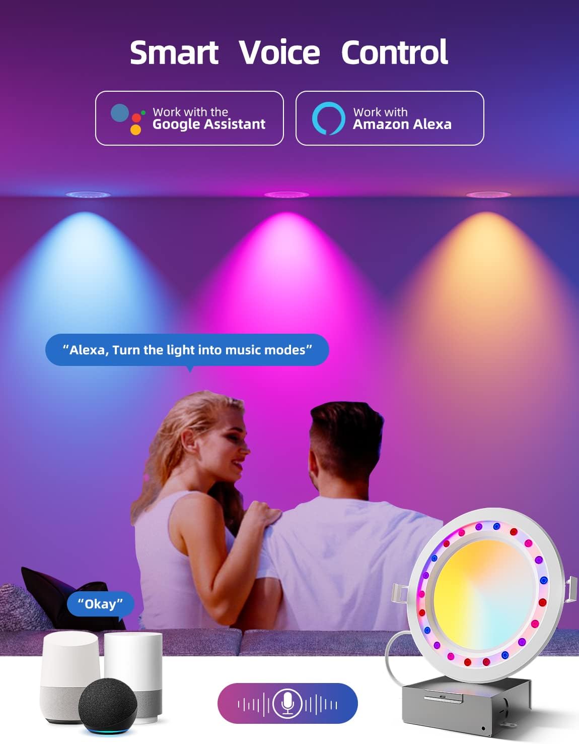 Explore Versatile 4-Pack 6 Inch Smart Recessed Lighting with RGBWW and Multi-Control