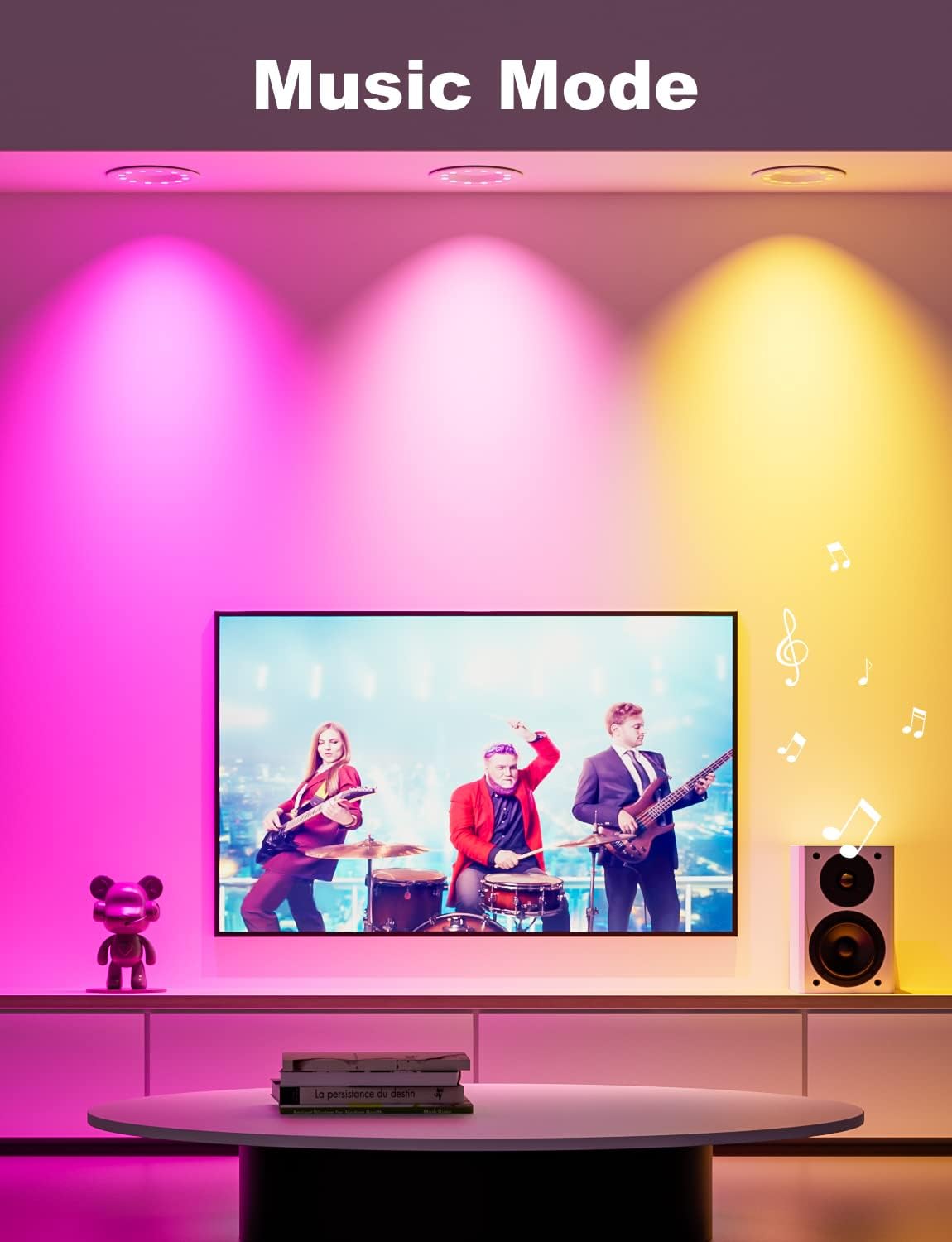 Further personalization is possible with music mode, where lights change color in sync with the beat of any external music, adding an extra layer of ambiance to your entertainment spaces. Plus, group control functionality allows you to manage multiple lights in different areas from a single point, making it easy to adjust settings across all your downlights without needing to control each one individually.