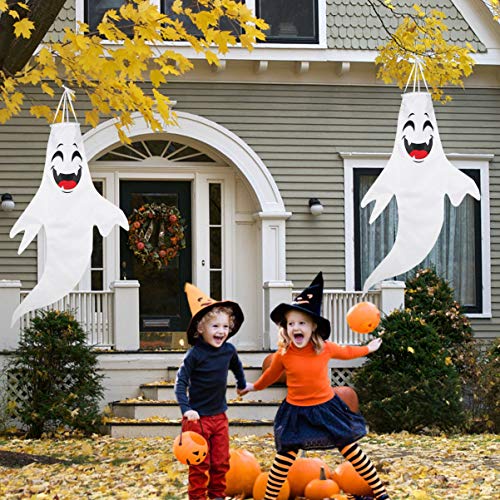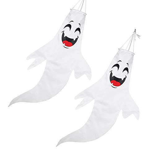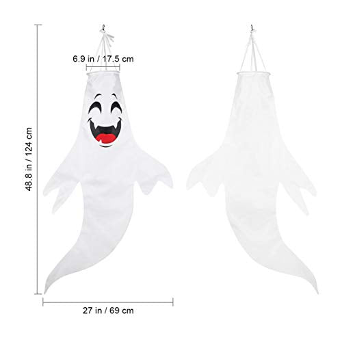 STOBOK 2 Pack Halloween Ghost Windsock Flag, 48.8 inch Halloween Outdoor Hanging Wind Socks Decoration for Front Yard Patio Lawn Garden,Halloween Party Decor