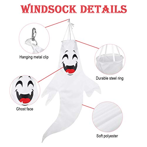 - 🎃Package includes TWO Windsocks:2PCS Halloween Ghost Windsocks Flag per set,cute ghost face, look funny and unique, wind will blow into through the opening of large steel ring.