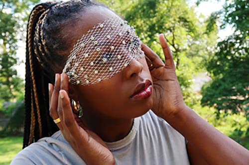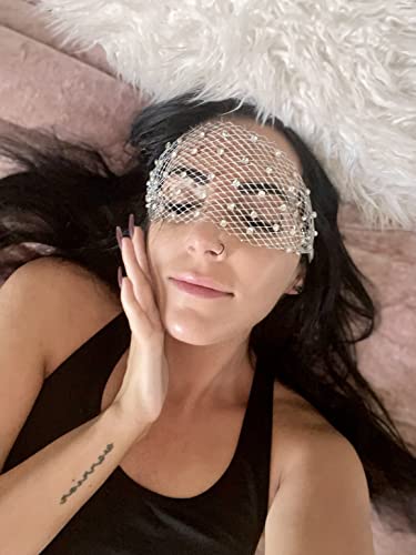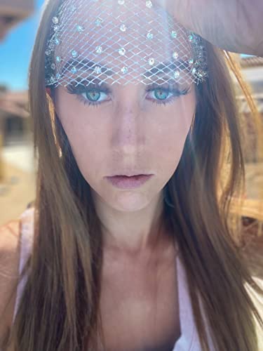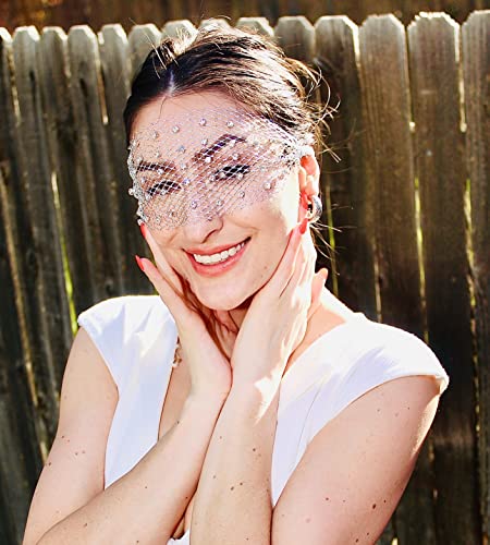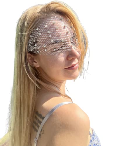 Sparkle with the Sun Goddess Headpiece – Silver Eye Veil with Rhinestones, One Size Fits All