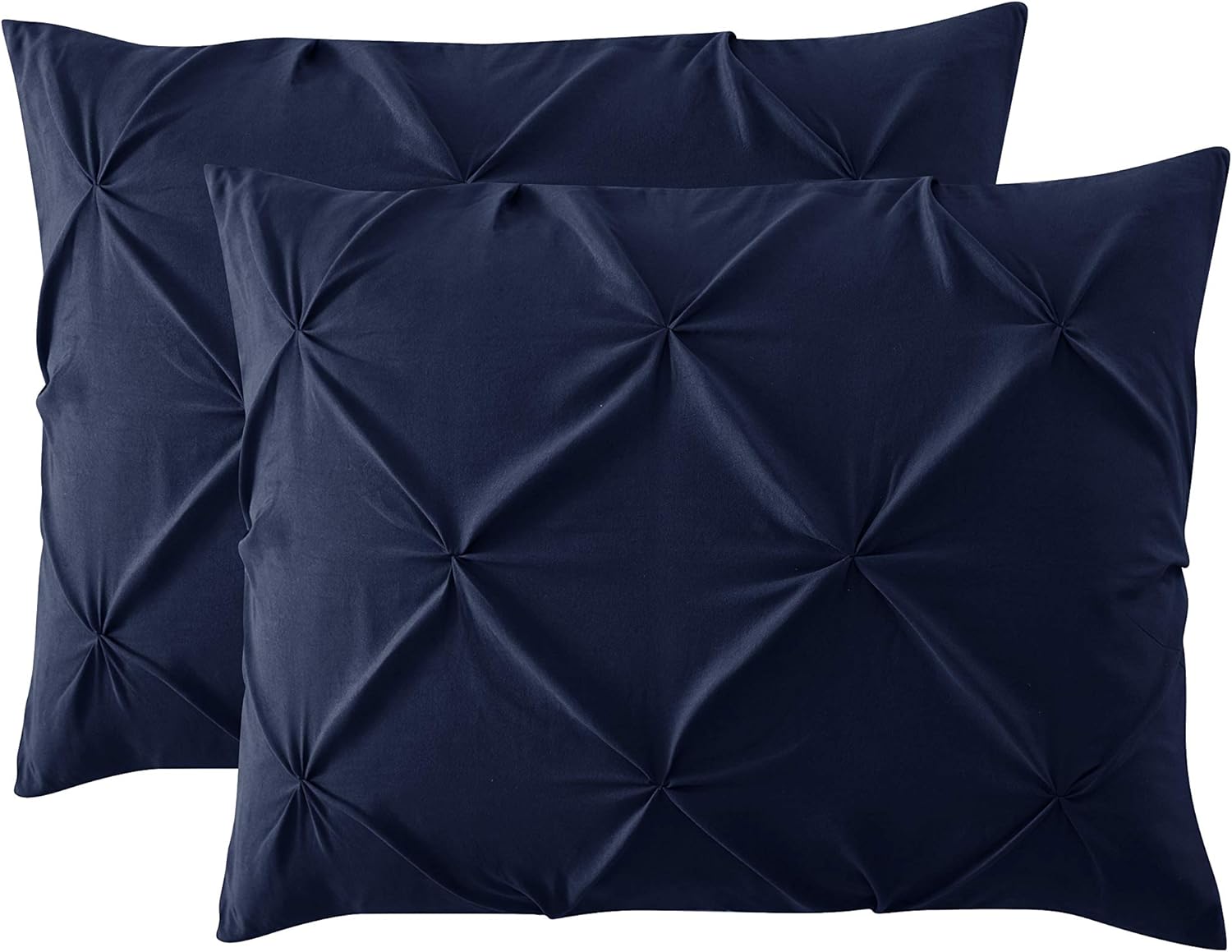 Transform your bedroom with this stunning navy queen-size duvet cover set featuring a luxurious pinch pleat pin tuck design. Crafted from 100% fine double-brushed microfiber, this set offers exceptional softness, making it perfect for year-round comfort. The set includes one duvet cover (90" x 90" / 229 cm x 229 cm) and two pillow shams (21" x 26" / 53 cm x 66 cm), providing a cohesive, stylish look for your bed. The sophisticated pinch pleat design enhances the elegance of any room, and the high-quality microfiber ensures durability, breathability, and a soft touch every night. This duvet cover set is ideal for home, kids' rooms, guest rooms, and dorms, adding a chic, clean aesthetic while keeping your bedding fresh and protected. Easy to care for, simply machine wash cold and tumble dry low. Enjoy both luxury and practicality with this all-season duvet cover set.