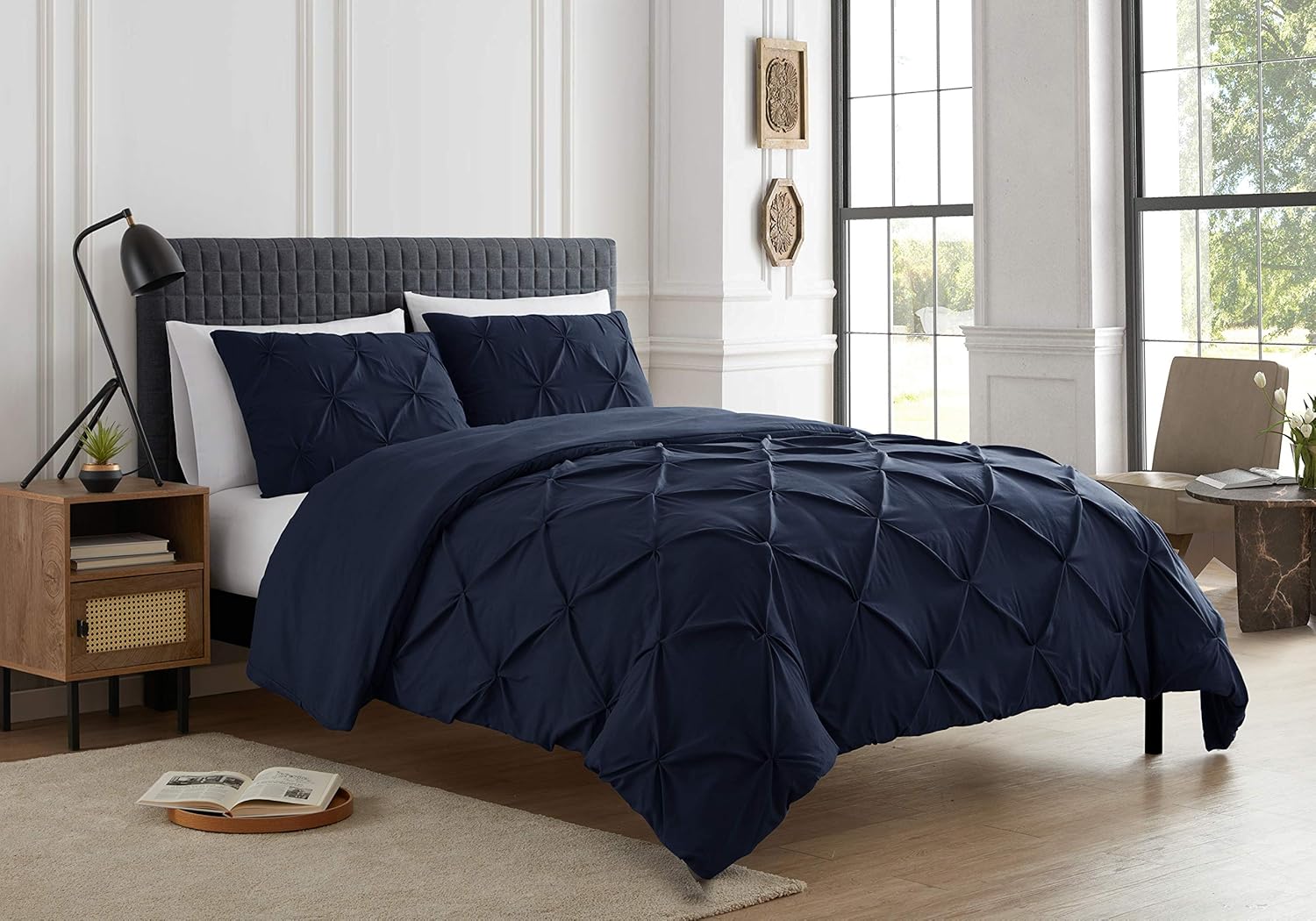 Navy Queen Size 3-Piece Duvet Cover Set – Soft, Luxurious Pinch Pleat Design
