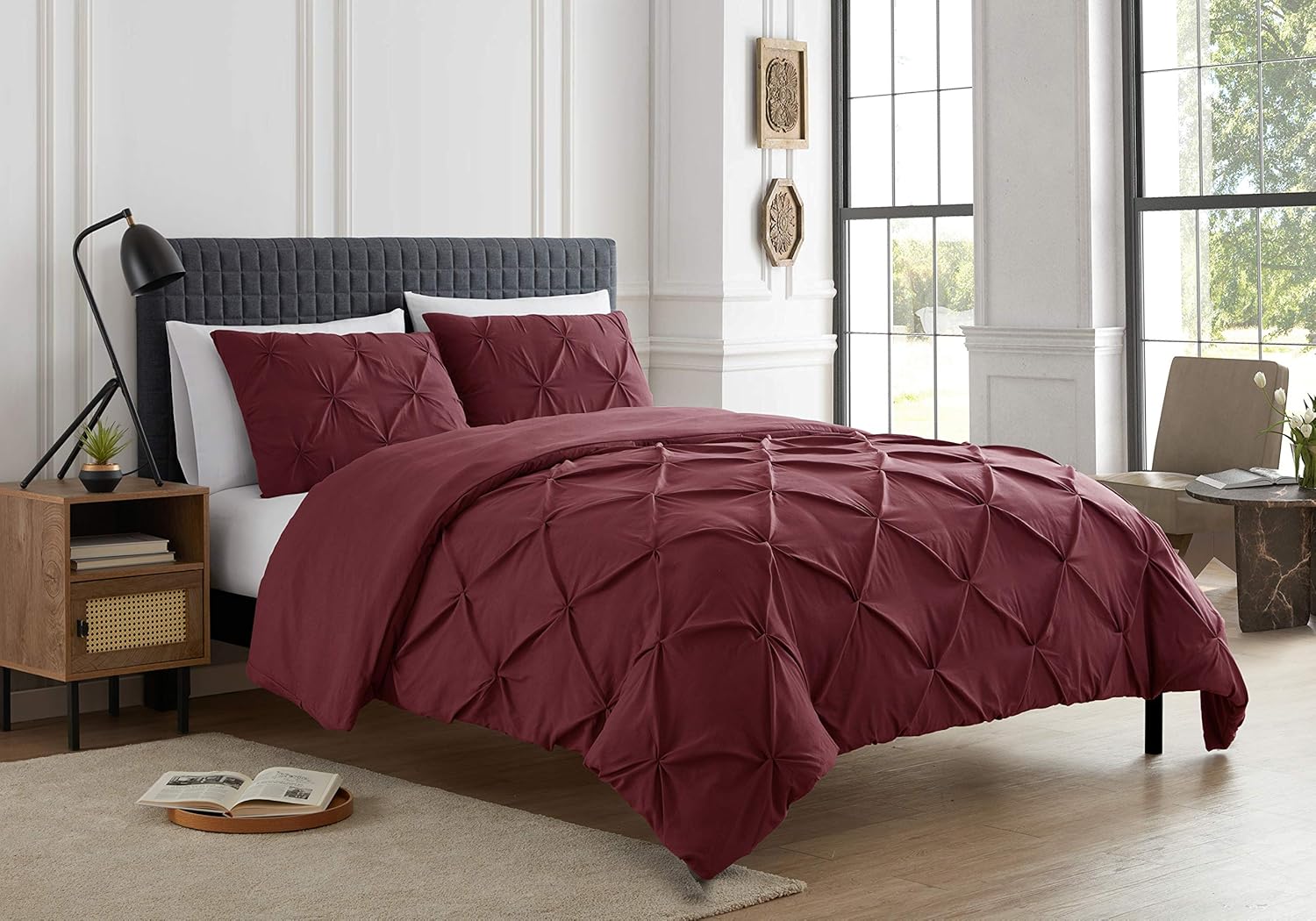 Burgundy Red Queen 3-Piece Duvet Cover Set - Soft, Luxurious Pinch Pleat Design