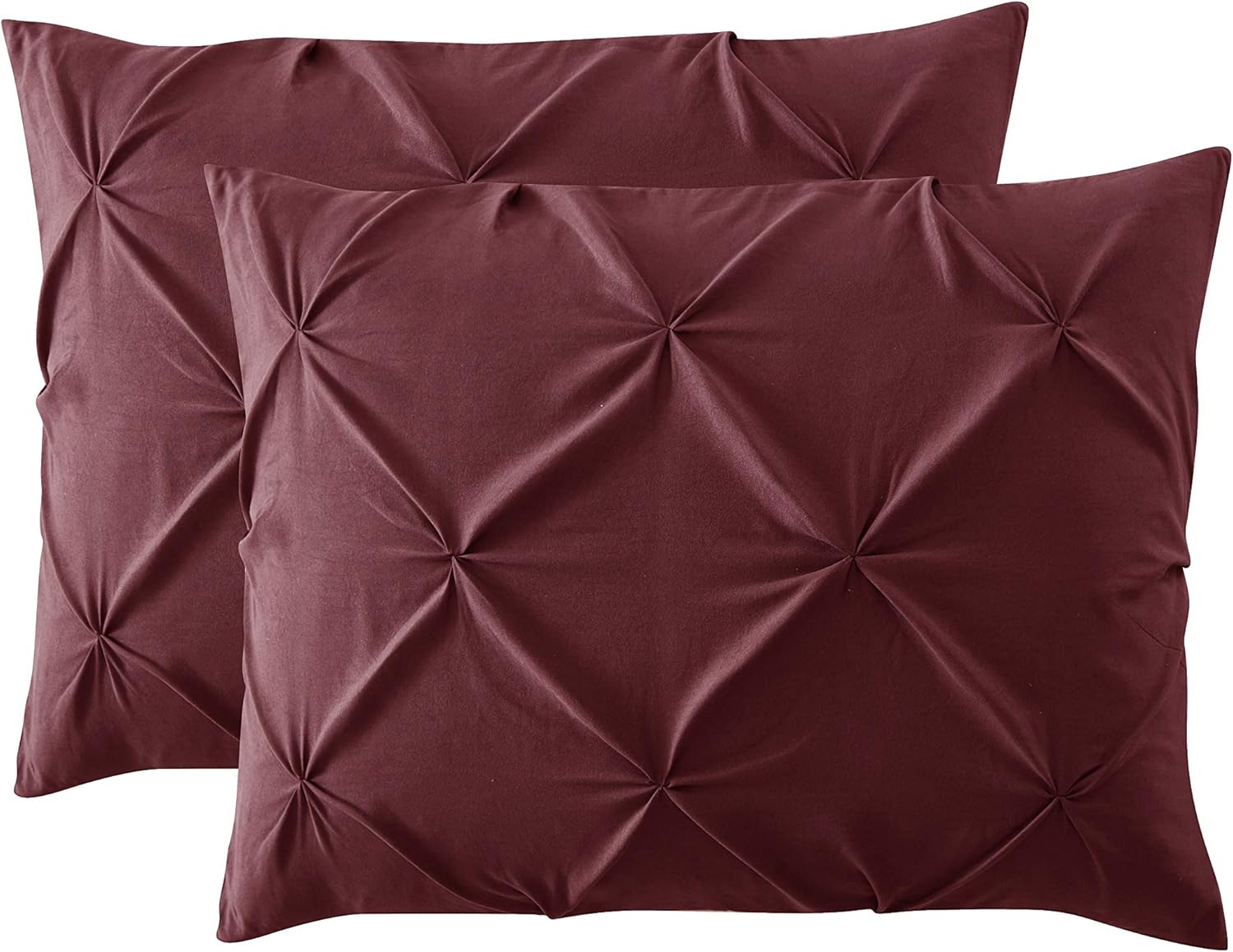 Transform your bedroom with this stunning burgundy red queen-size duvet cover set featuring a luxurious pinch pleat pin tuck design. Crafted from 100% fine double-brushed microfiber, this set offers exceptional softness, making it perfect for year-round comfort. The set includes one duvet cover (90" x 90" / 229 cm x 229 cm) and two pillow shams (21" x 26" / 53 cm x 66 cm), providing a cohesive, stylish look for your bed. The sophisticated pinch pleat design enhances the elegance of any room, and the high-quality microfiber ensures durability, breathability, and a soft touch every night. This duvet cover set is ideal for home, kids' rooms, guest rooms, and dorms, adding a chic, clean aesthetic while keeping your bedding fresh and protected. Easy to care for, simply machine wash cold and tumble dry low. Enjoy both luxury and practicality with this all-season duvet cover set.