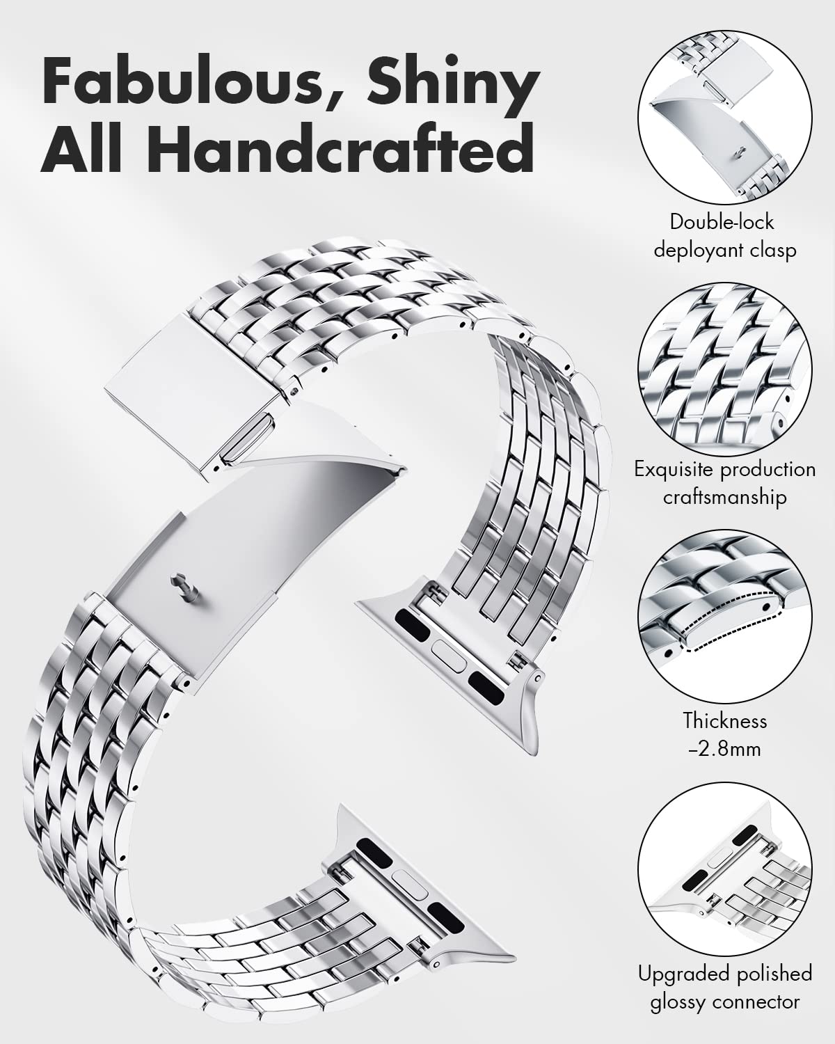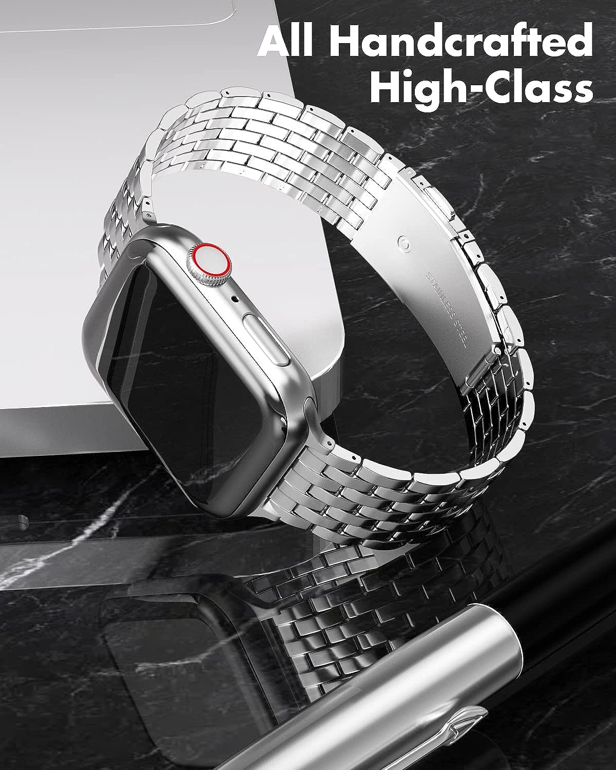 Our Apple Watch band sets a new standard in wrist fashion. Fully handcrafted from premium 304 stainless steel, its luminescent surface exudes opulence and nobility while ensuring durability for long-term use. The band's design, craftsmanship, and aesthetic elegance are fused into an attractive color profile.