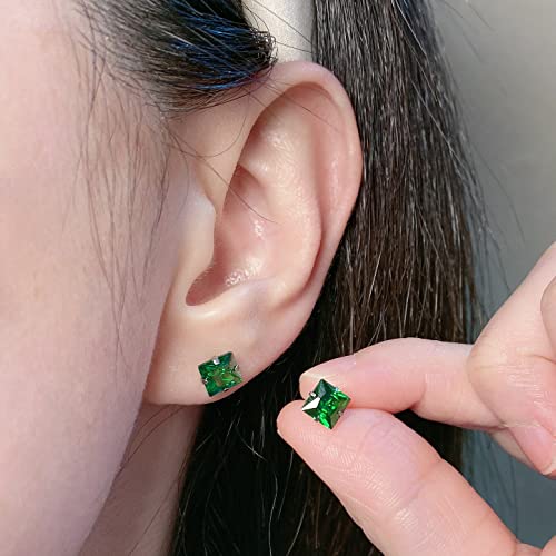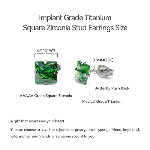 Titanium earrings, hypoallergenic earrings, pure titanium medical implant grade, suitable for sensitive ears with birthstone crystals CZ simulated diamonds (Emerald Green)