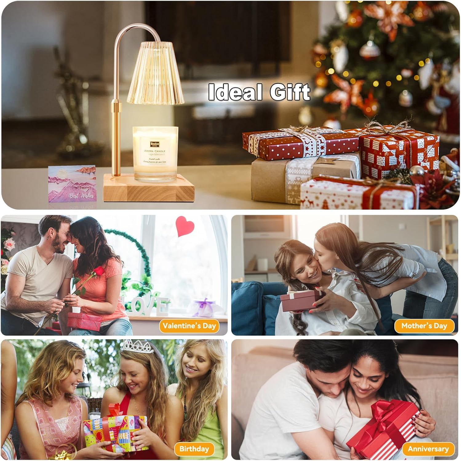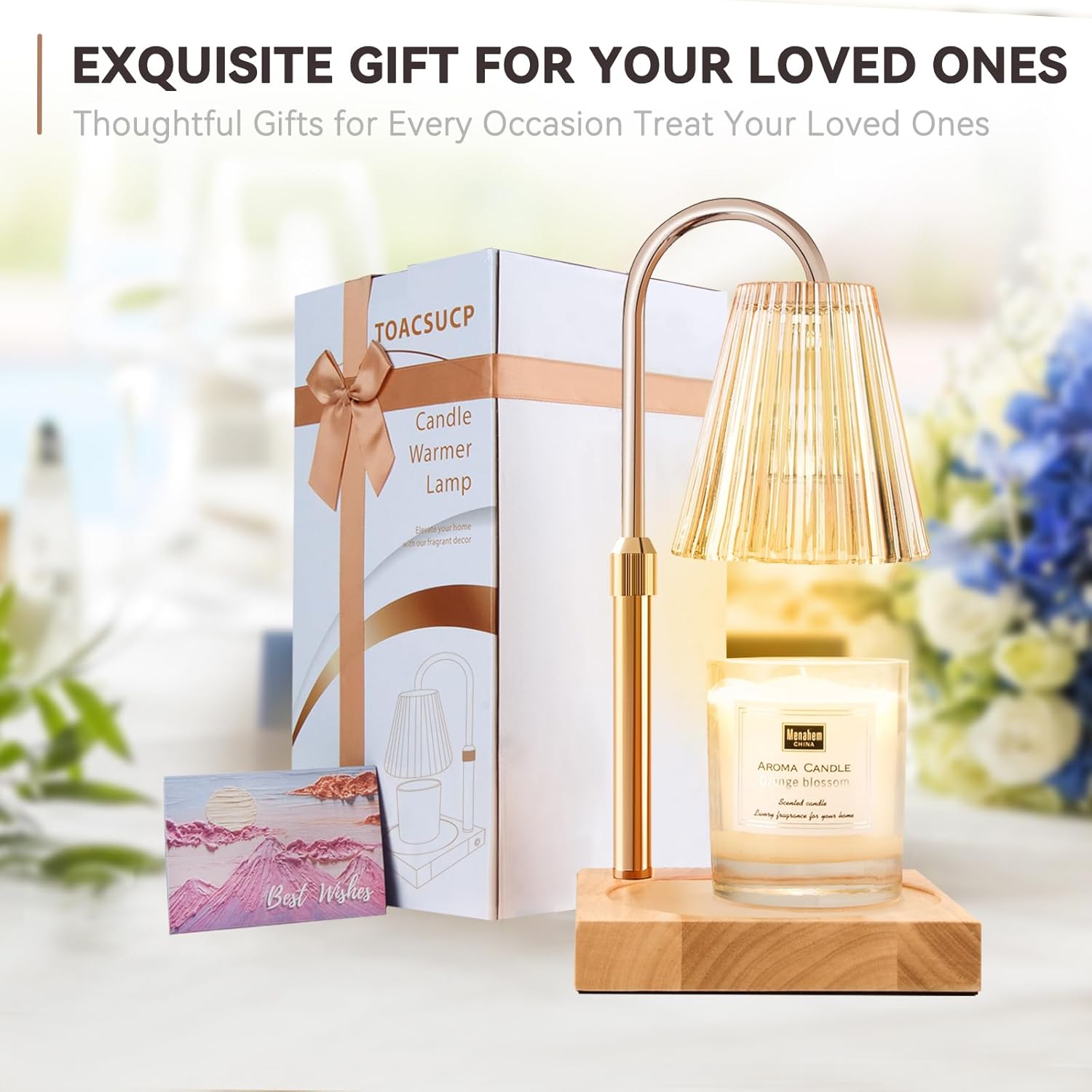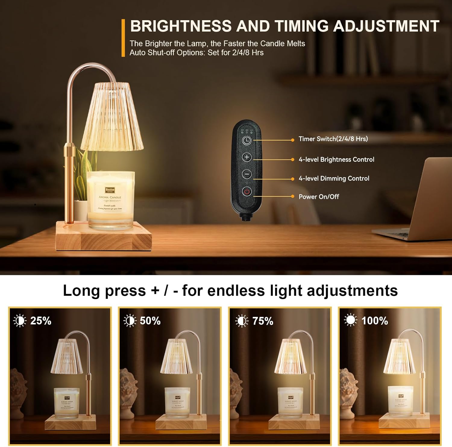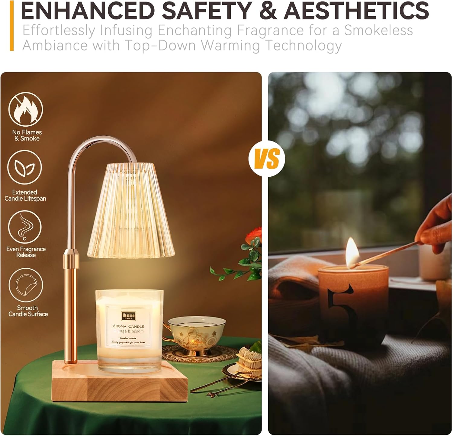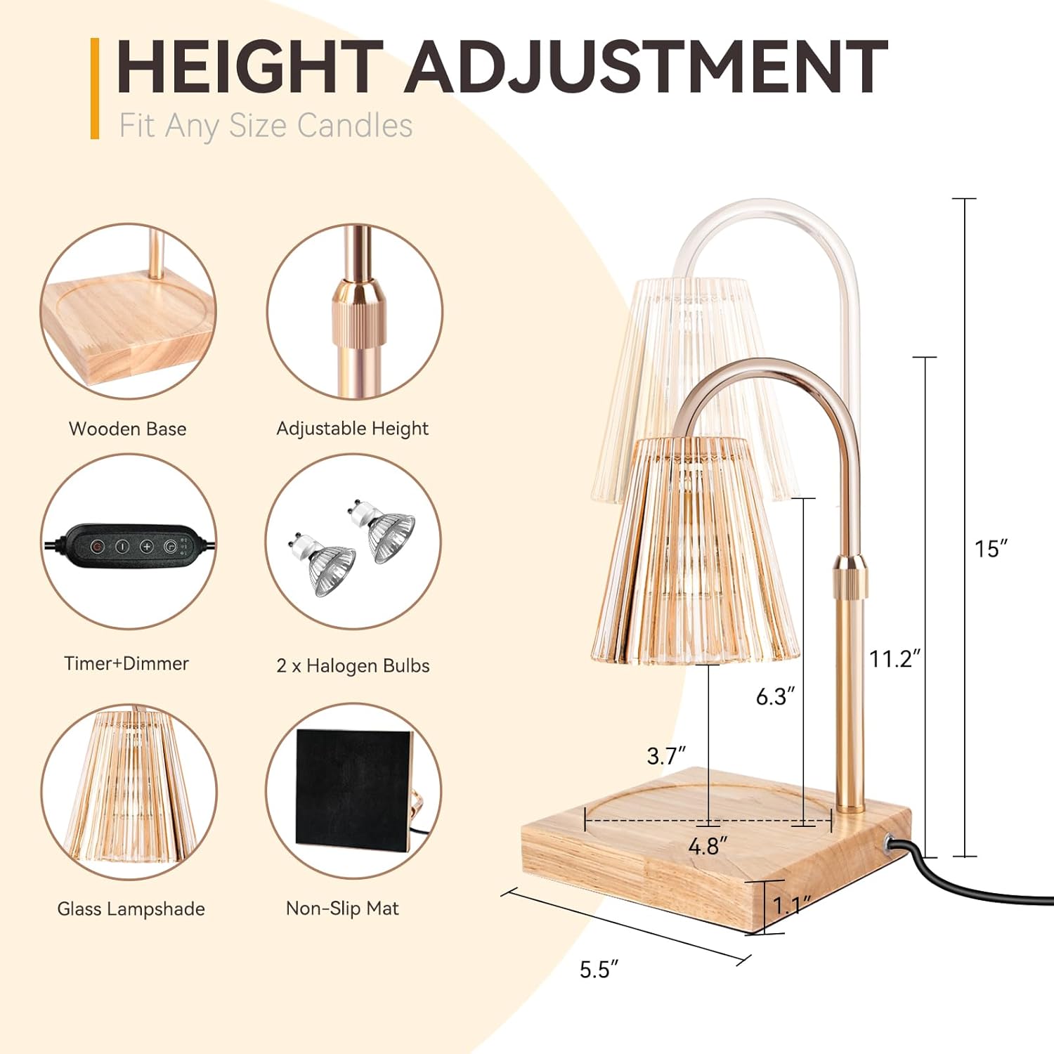 Candle Warmer Lamp with Timer, Adjustable Height & Brightness, Natural Wood Base