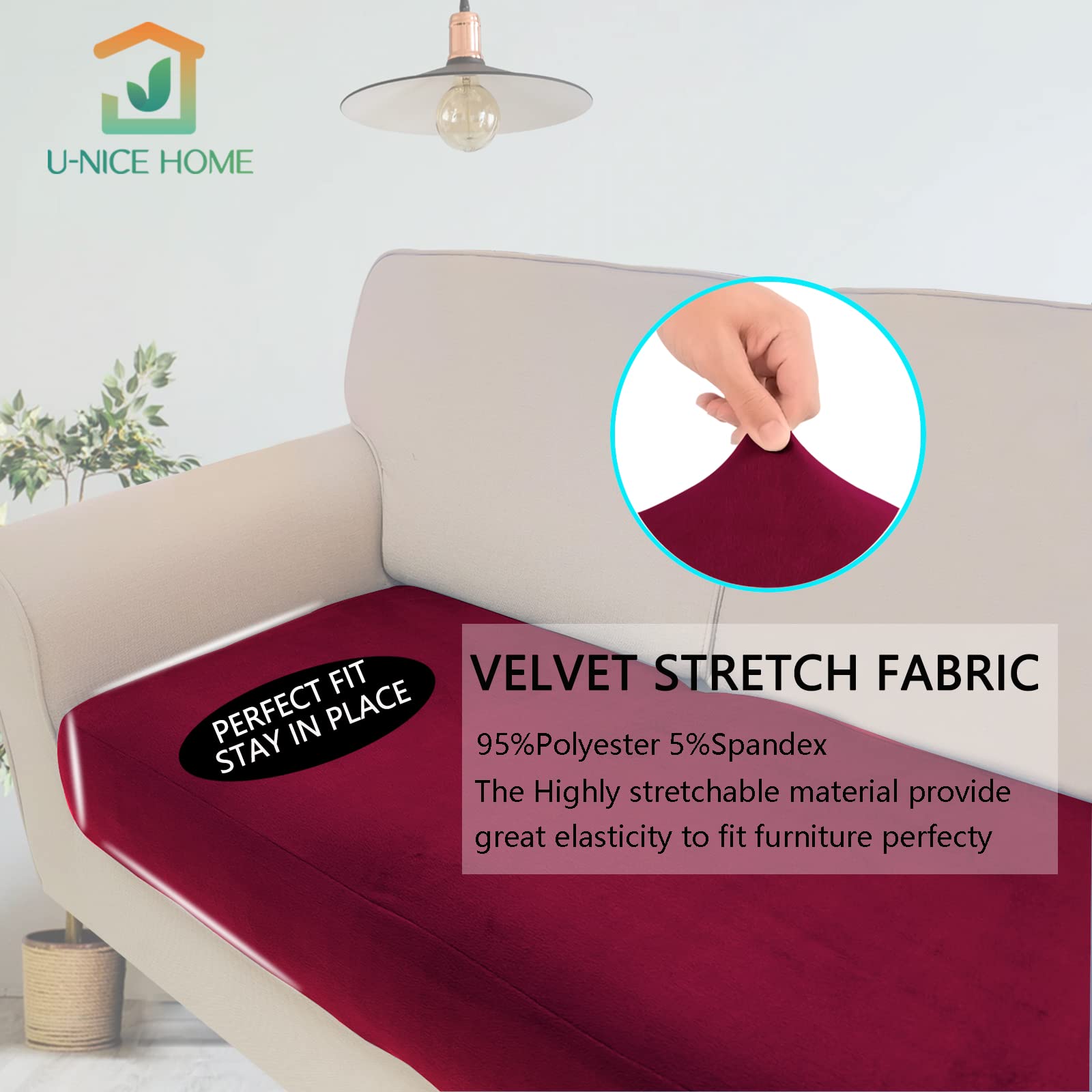 Burgundy Soft Velour Fabric Sofa Cushion Cover/Protector/Slipcover